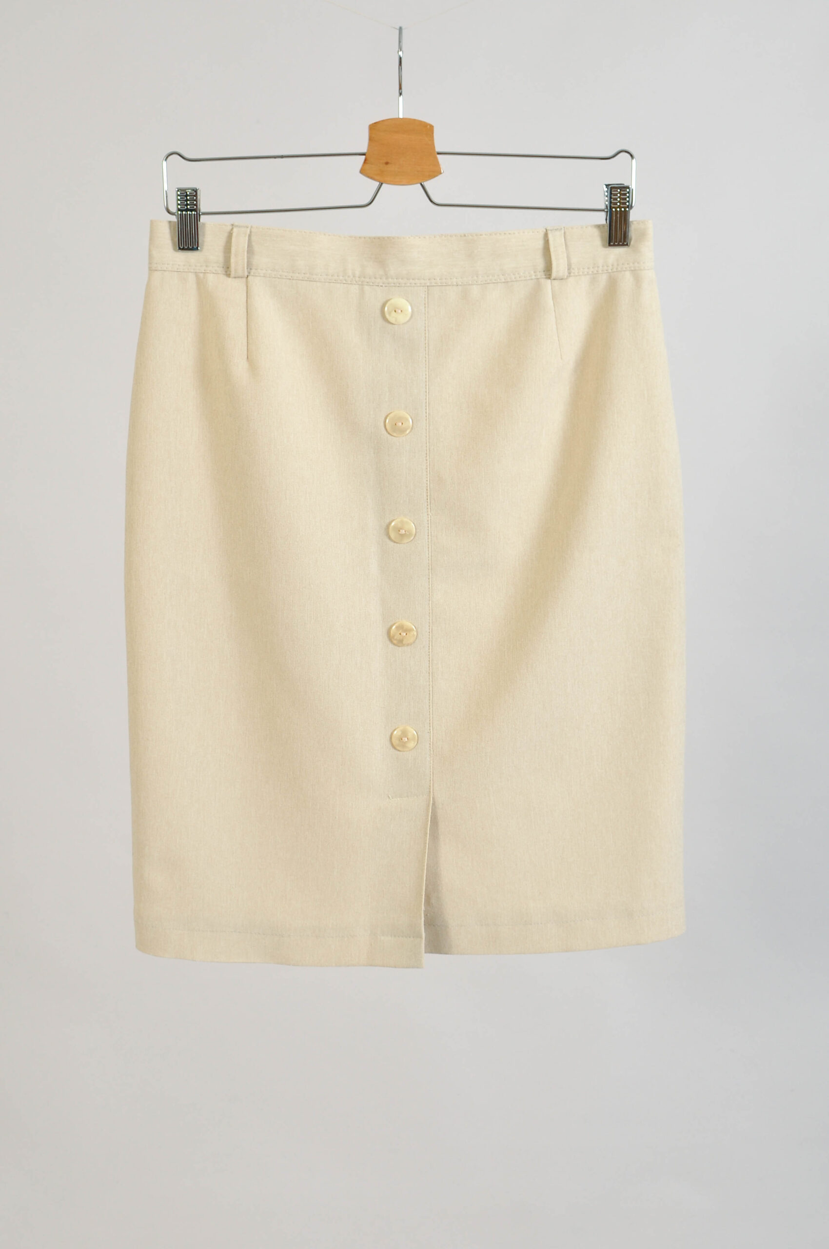 Vintage 80s pencil skirt in beige. A classic, elegant piece with a flattering high-waisted fit. There are signs of natural wear as to be expected with all vintage clothes.