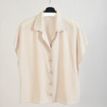 A beautiful neutral-toned vintage blouse that pairs effortlessly with jeans, skirts, or tailored trousers — a great addition to any vintage wardrobe.