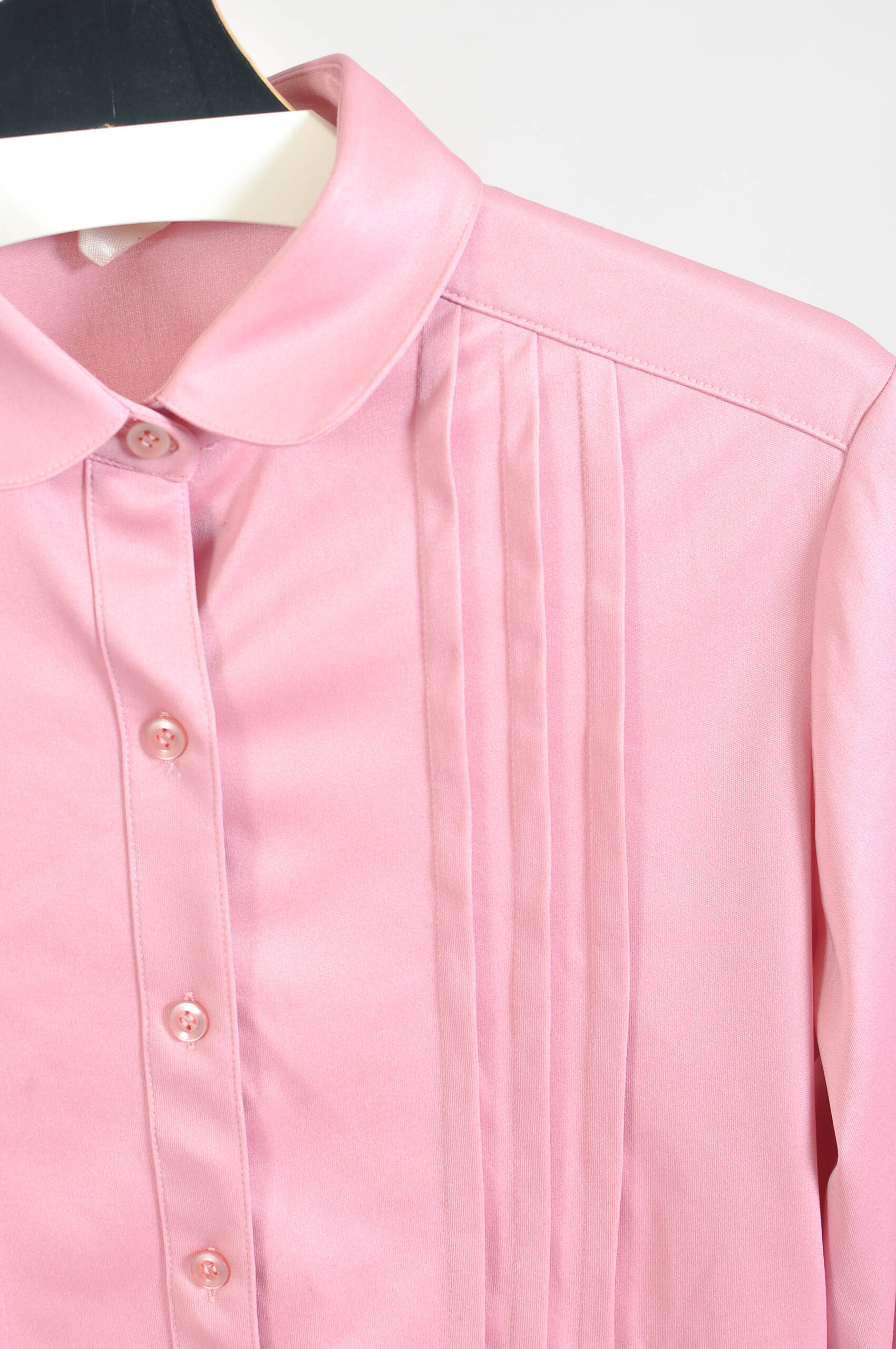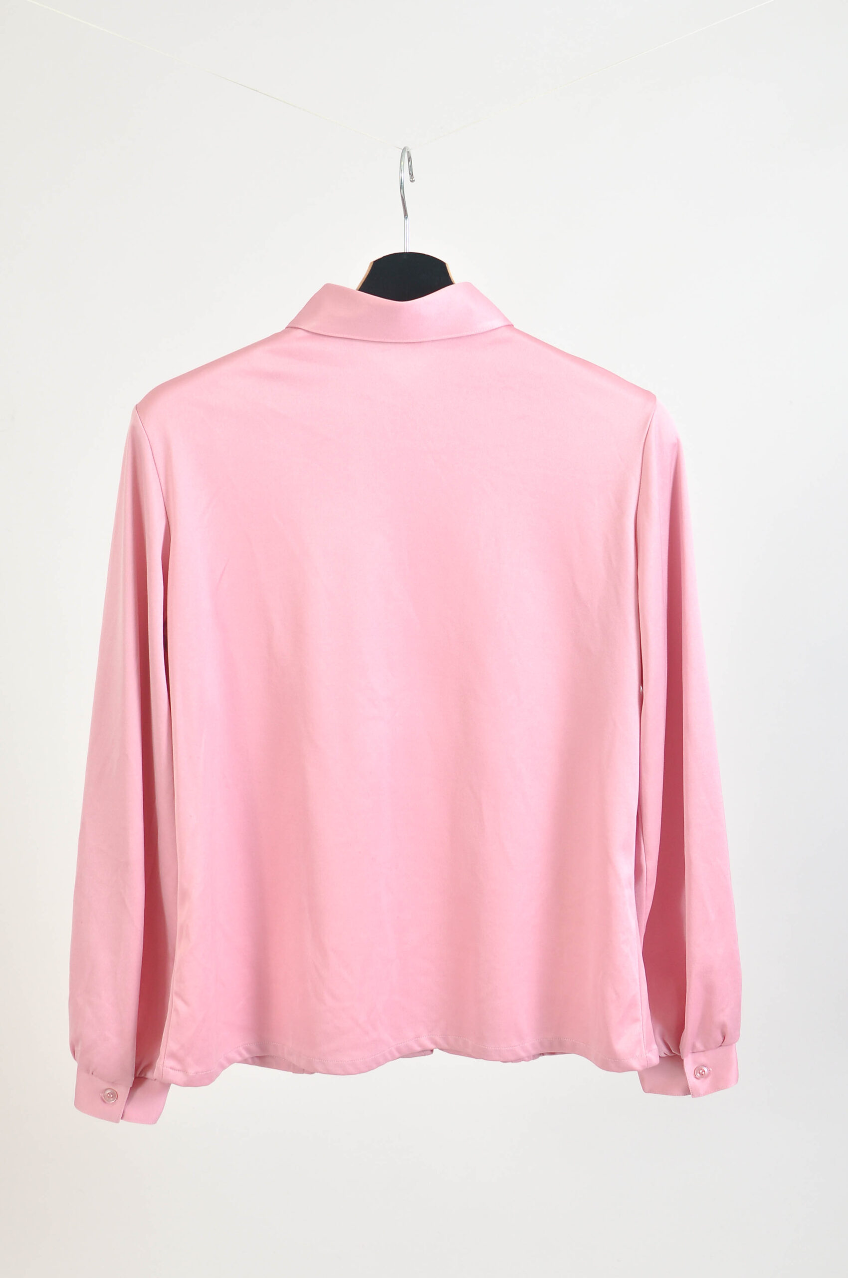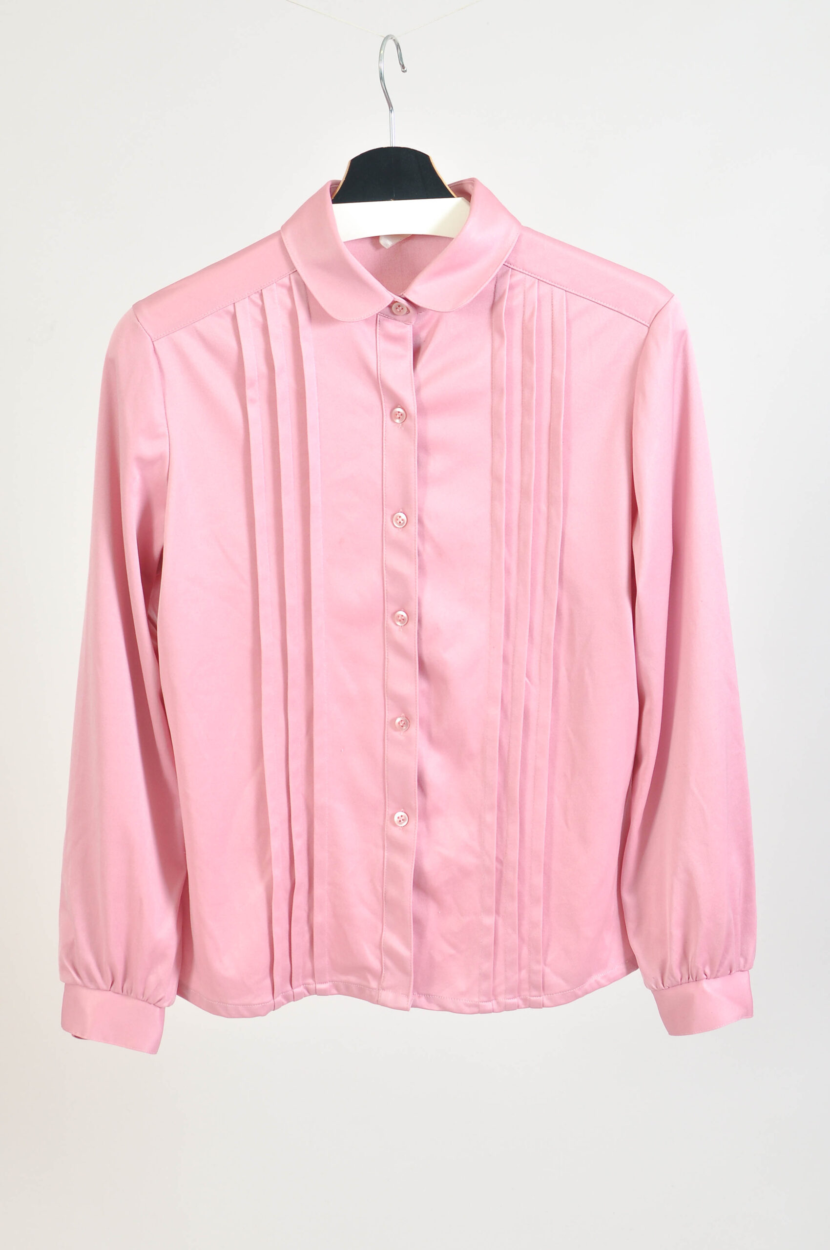 Add a touch of retro elegance to your wardrobe with this stunning vintage 80s pink blouse. Its timeless style and vibrant color make it perfect for creating chic and unique outfits.