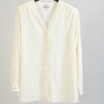 The relaxed and oversized fit makes it a versatile piece, ideal for styling in various ways. Whether tucked into high-waisted jeans or layered for a chic, effortless look, this 80s vintage blouse is a must-have for vintage lovers.