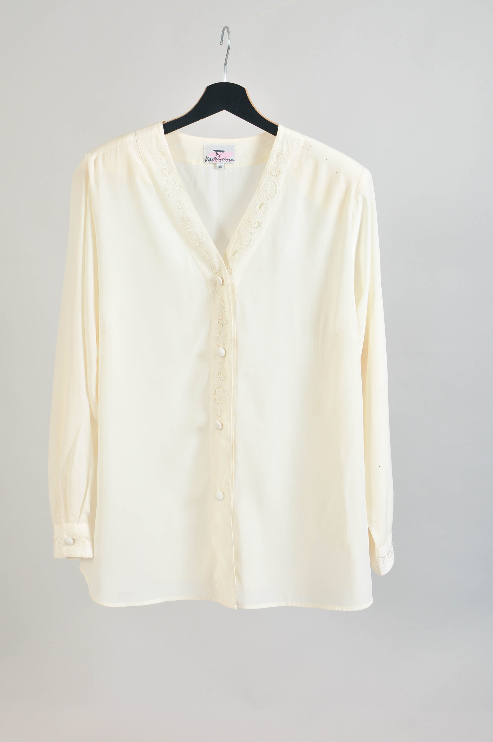 Vintage 80s White Blouse – Oversized Fit (L to XXXL) – Valentine
