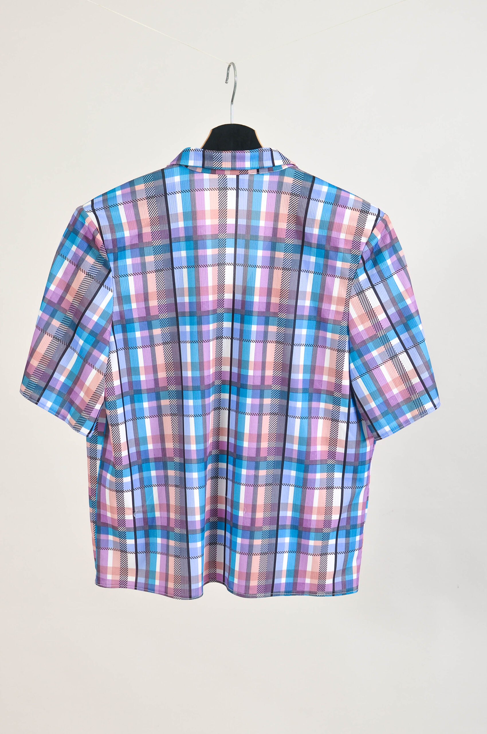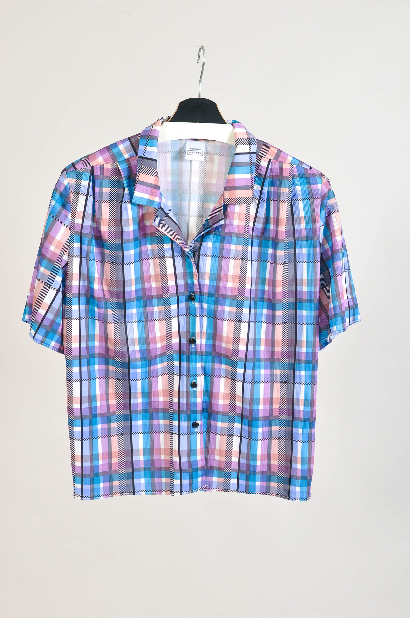 A true vintage gem – this 1980s checkered blouse was made in the UK and comes in size 38. Featuring a timeless checkered pattern and a flattering fit, it’s a versatile piece that can be styled for both casual and smart looks. In very good vintage condition, with natural signs of wear. Length: 62 cm, pit to pit: 53 cm. A must-have for collectors and retro fashion enthusiasts.