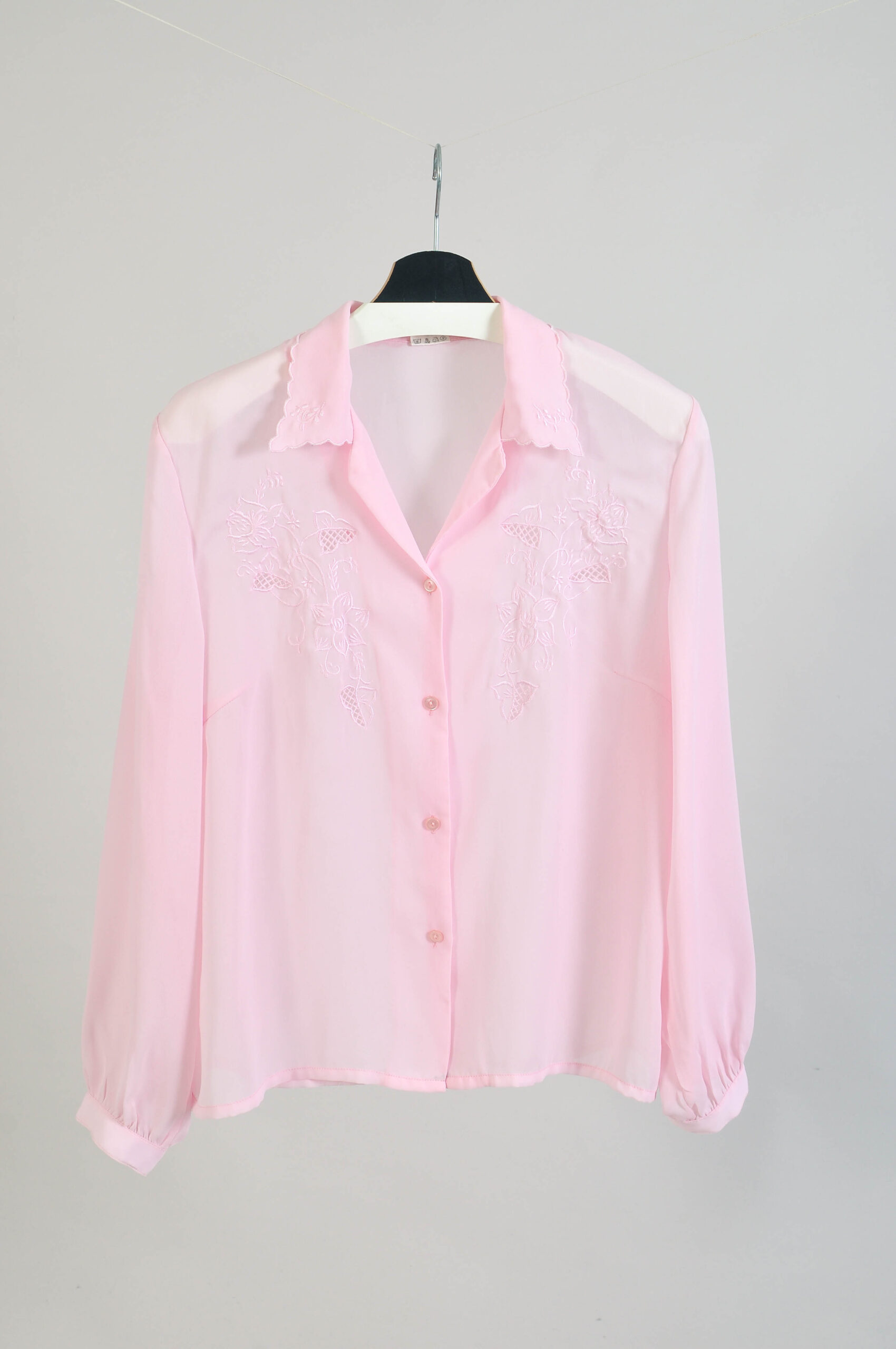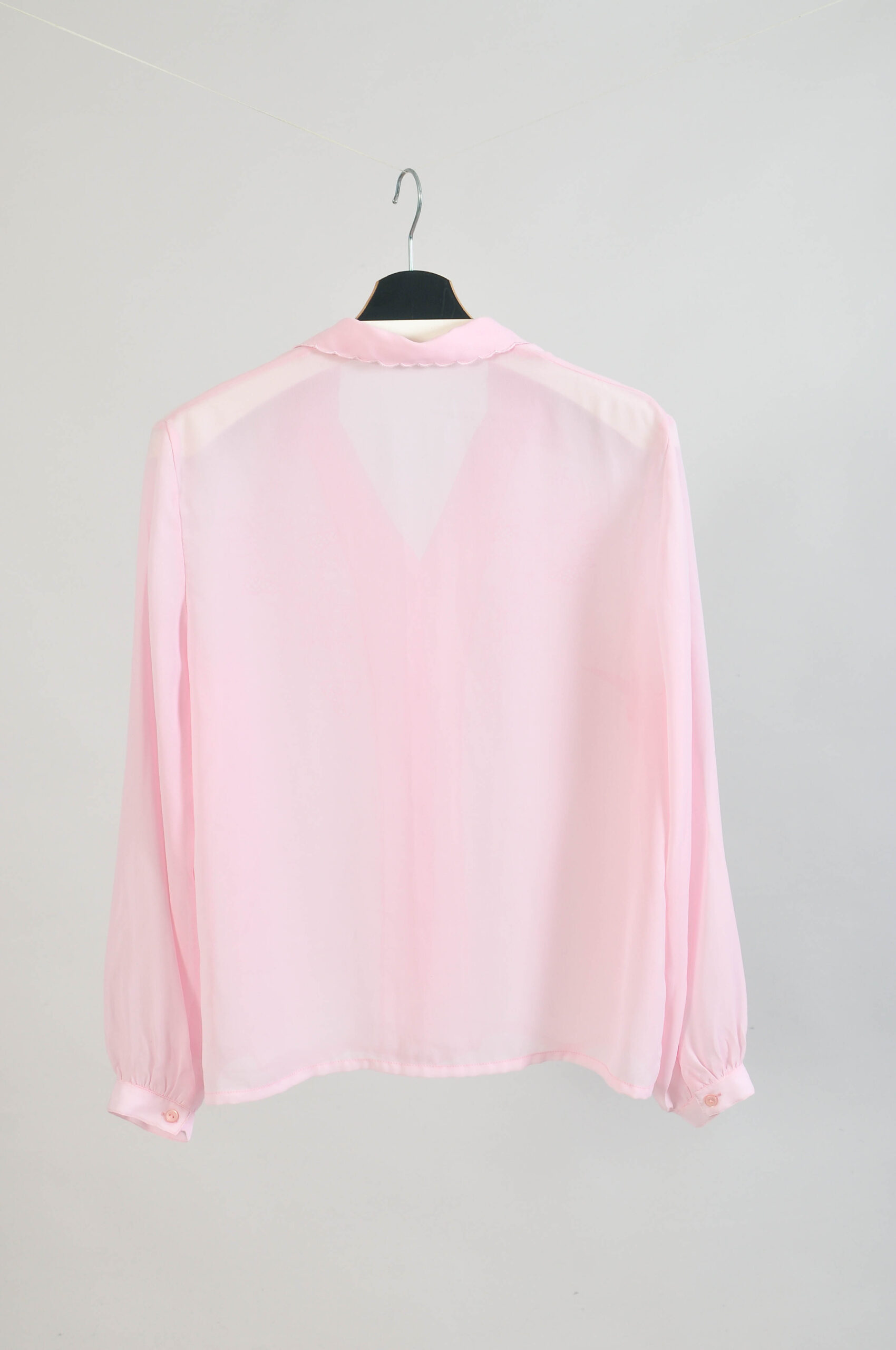 Vintage 80s Light Pink Polyester Blouse – Size 44