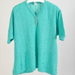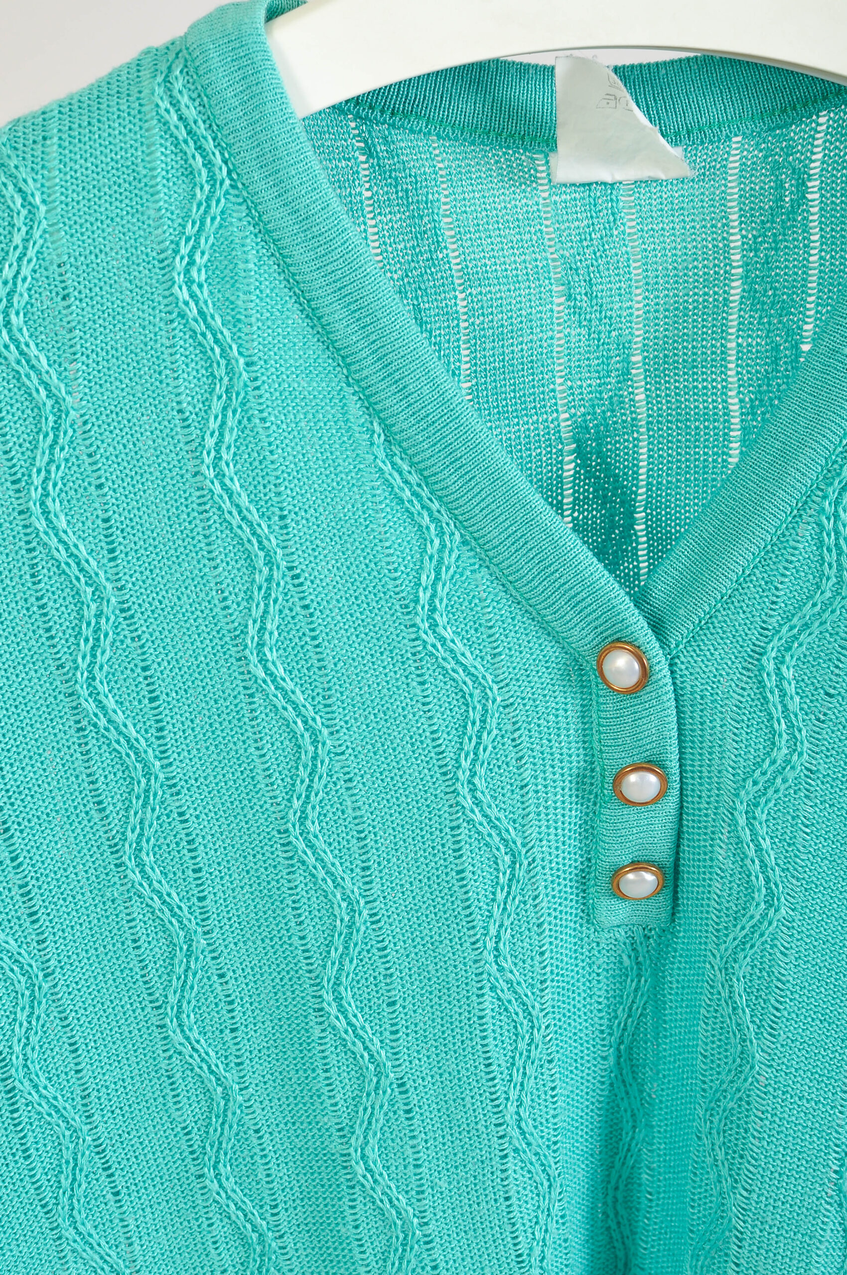 This Vintage 80s mint colour top is a fresh and eye-catching retro piece, perfect for adding soft colour to your vintage wardrobe. Featuring a relaxed, oversized silhouette, it reflects classic 1980s casual style.
