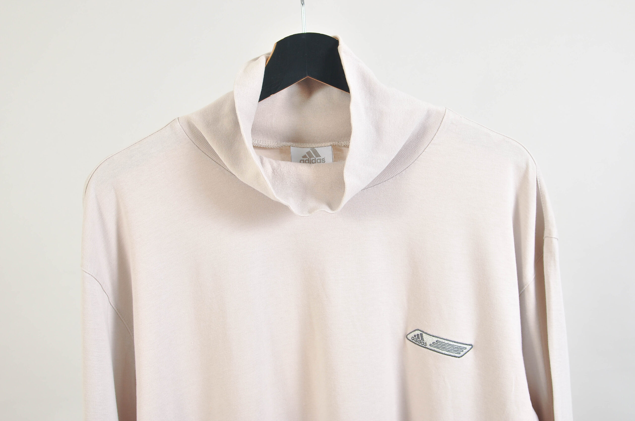 Add a touch of retro style to your wardrobe with this vintage 90s Adidas long sleeve turtleneck top in beige. In very good condition, with natural wear typical for vintage clothing.