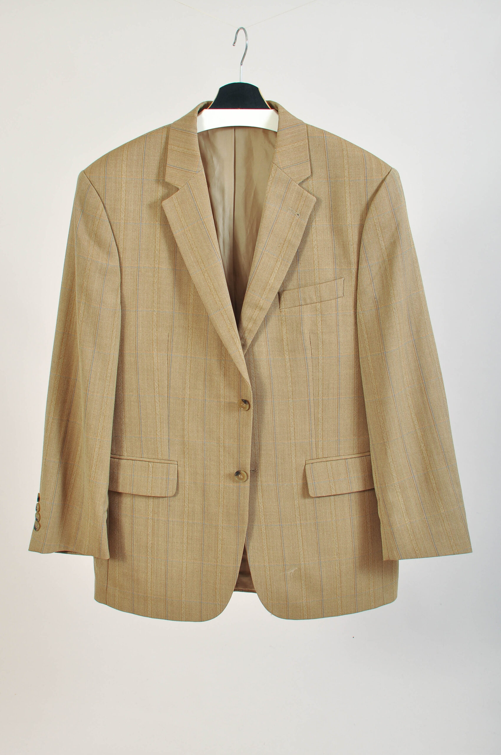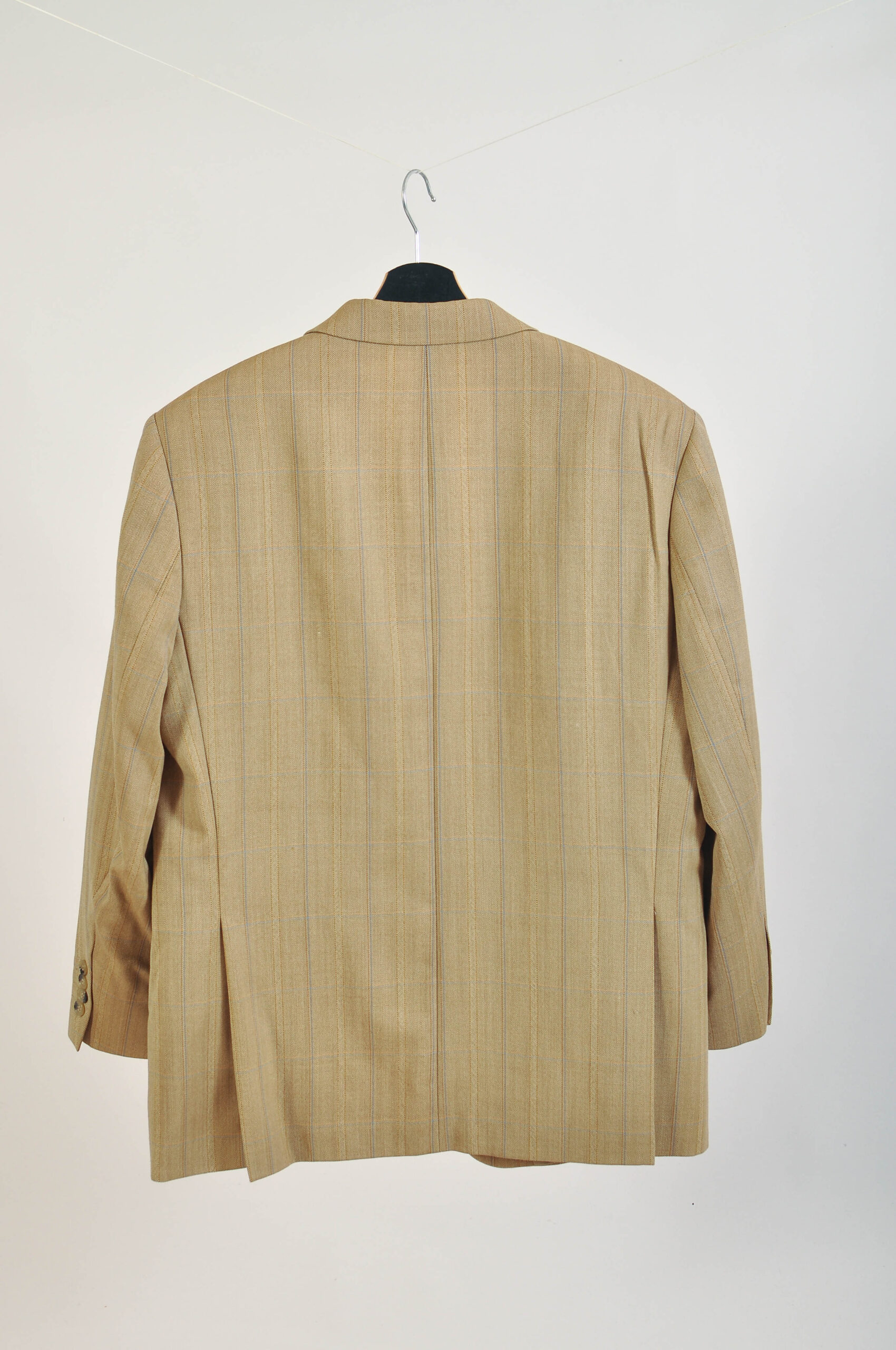 Authentic vintage 1990s beige checkered blazer jacket by McEarl, crafted from 100% wool with a timeless tailored silhouette. A versatile piece for smart-casual or classic styling. Shows natural signs of wear consistent with vintage condition. Please check measurements for accurate fit.