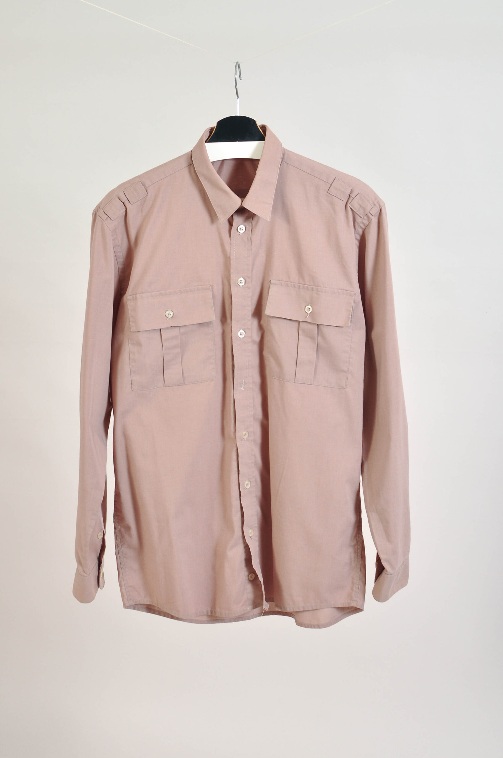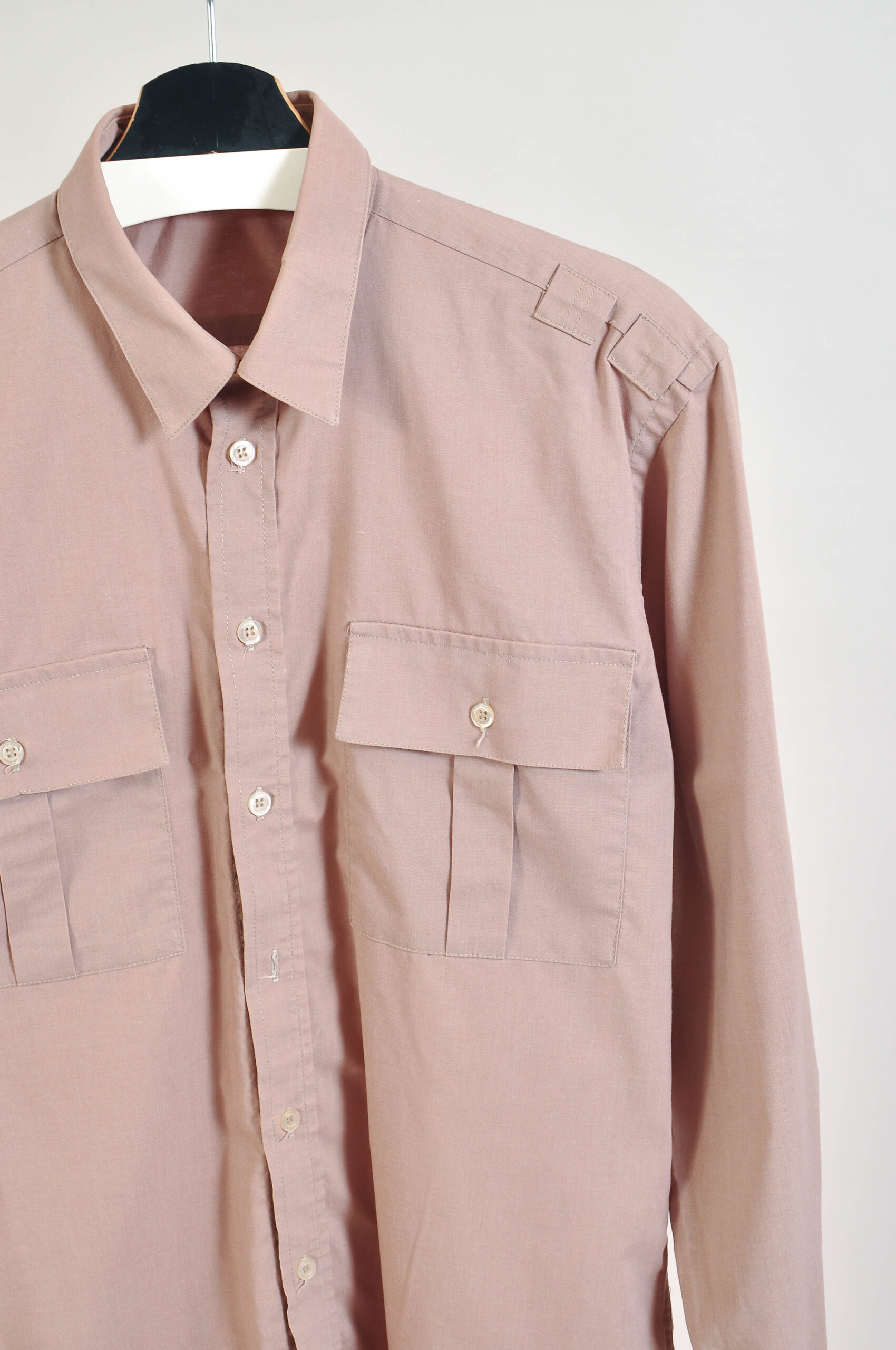 Authentic vintage 90s beige shirt featuring a classic minimalist design and relaxed fit typical of 1990s fashion. The neutral beige tone makes it an easy piece to style with denim, trousers, or layered vintage outfits.