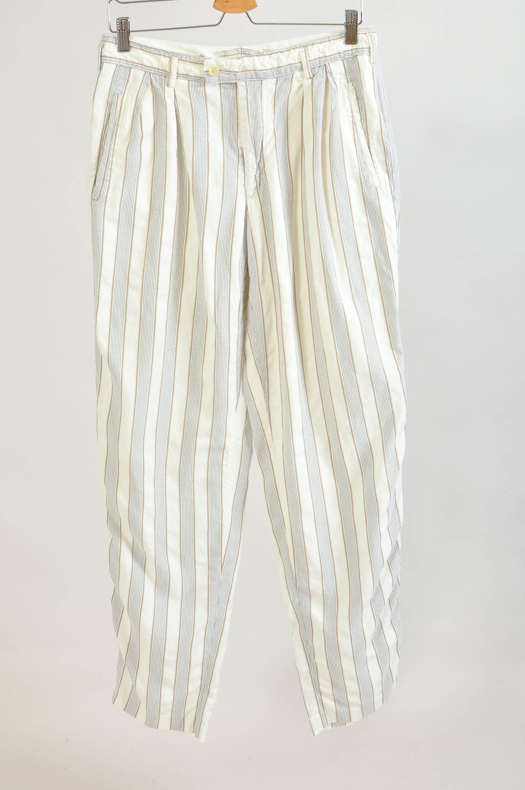 A crisp, timeless pair from the ’90s. These vintage striped white trousers by Björn Borg deliver a clean, tailored look with classic European craftsmanship.
