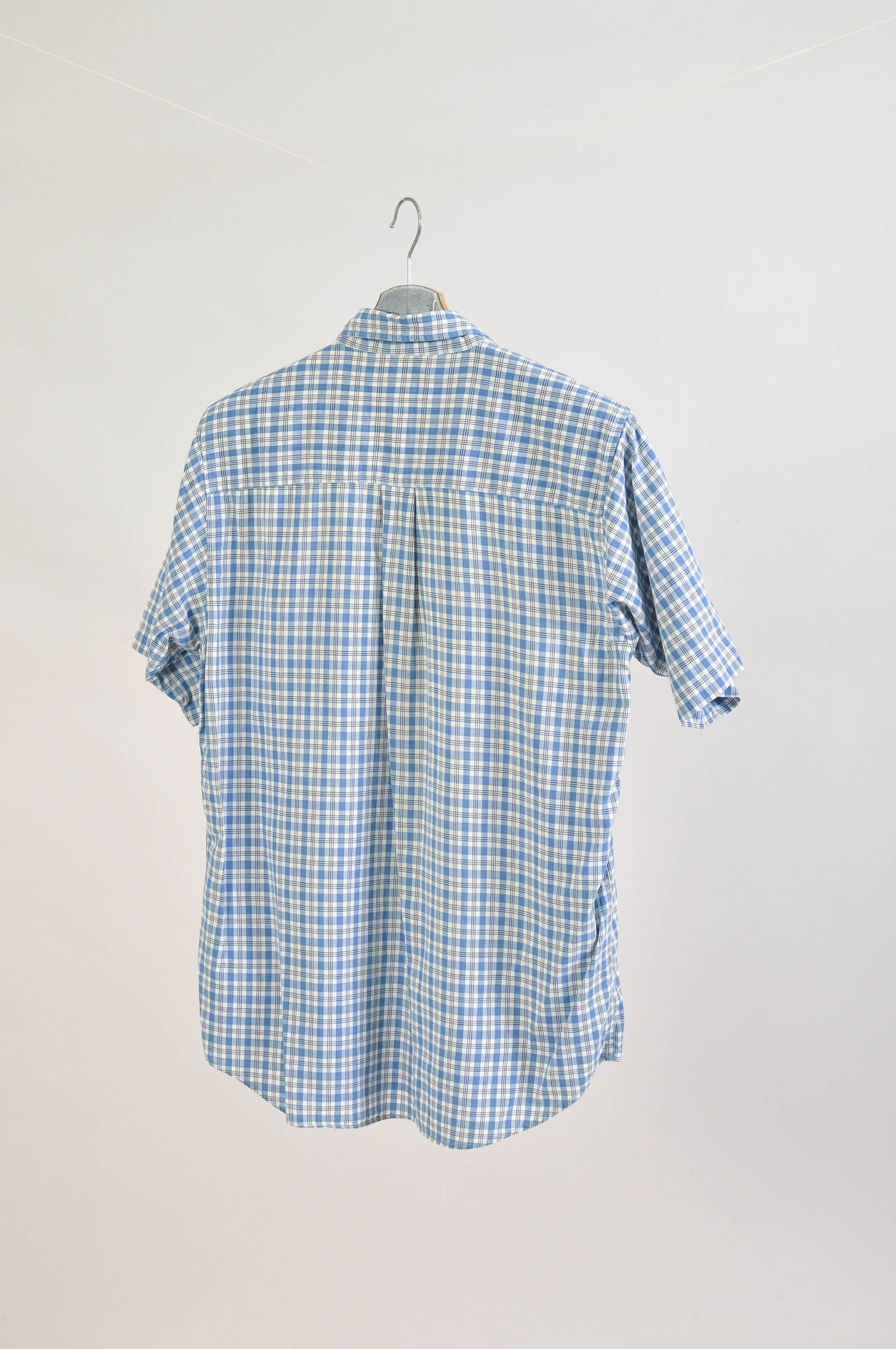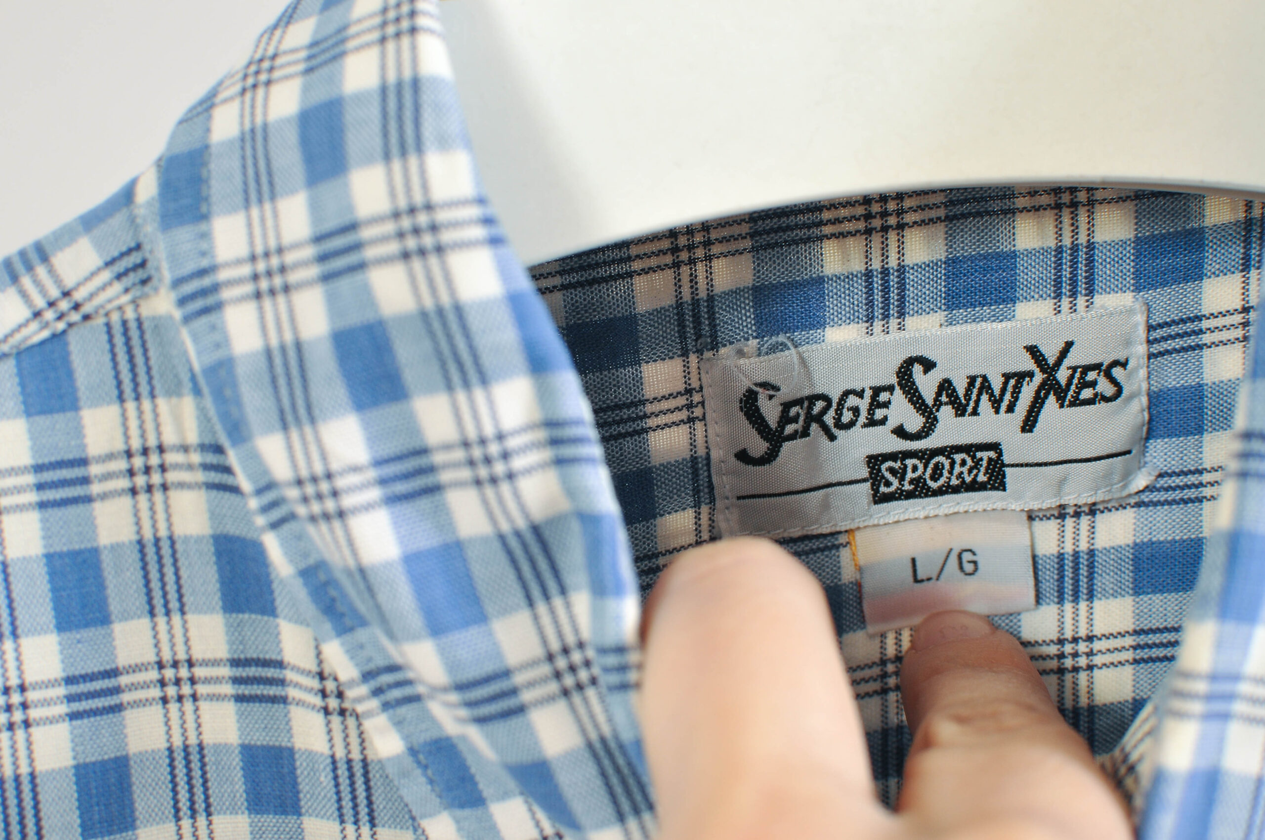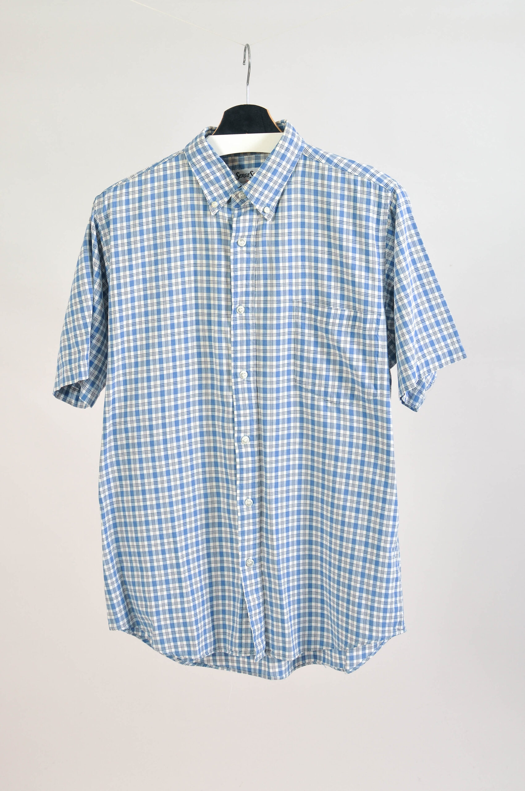 Classic vintage 90s checkered short sleeve shirt by Serge Saint Yves featuring a timeless plaid pattern and relaxed fit. A versatile piece perfect for casual wear and warm-weather outfits.
