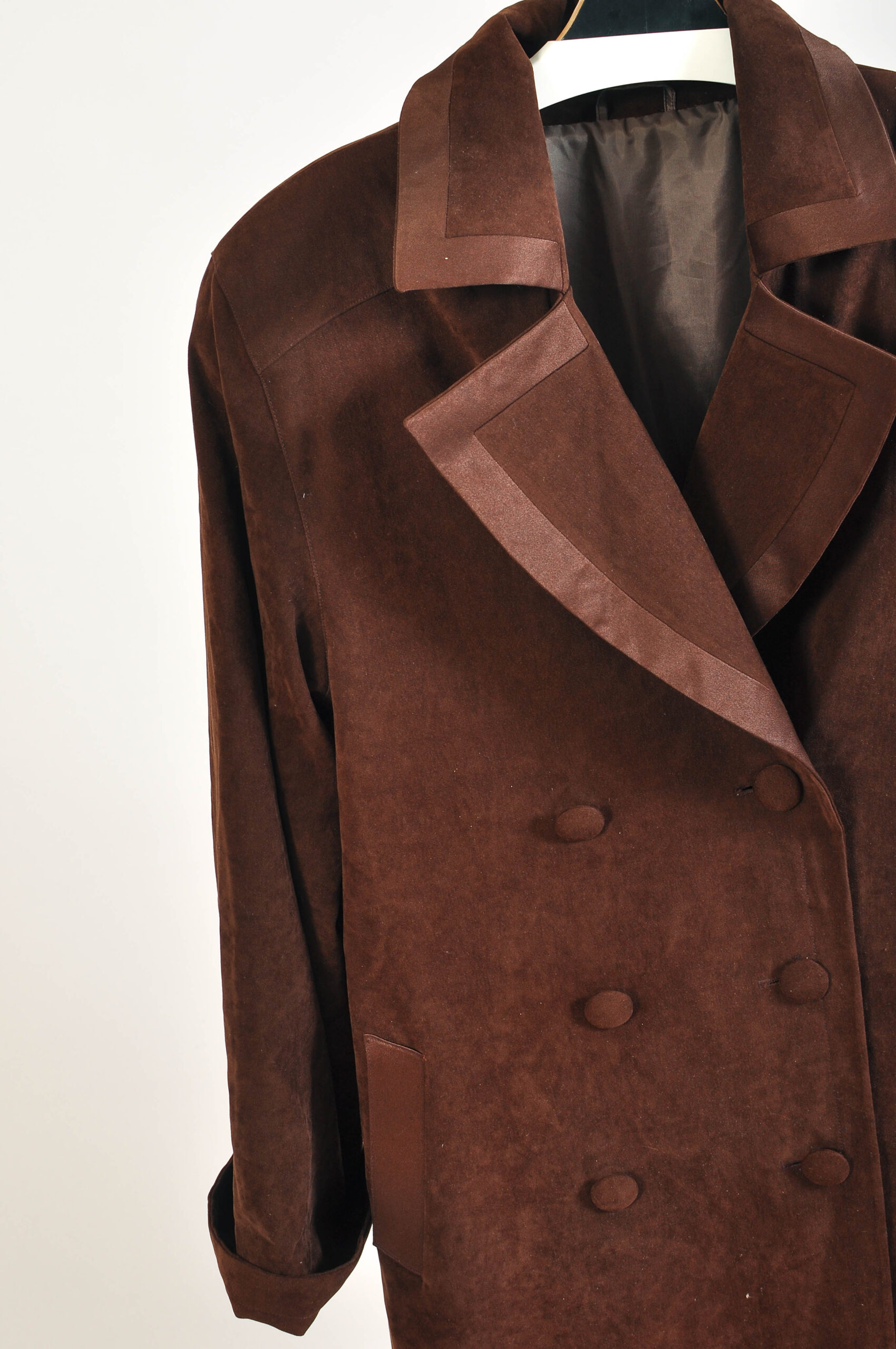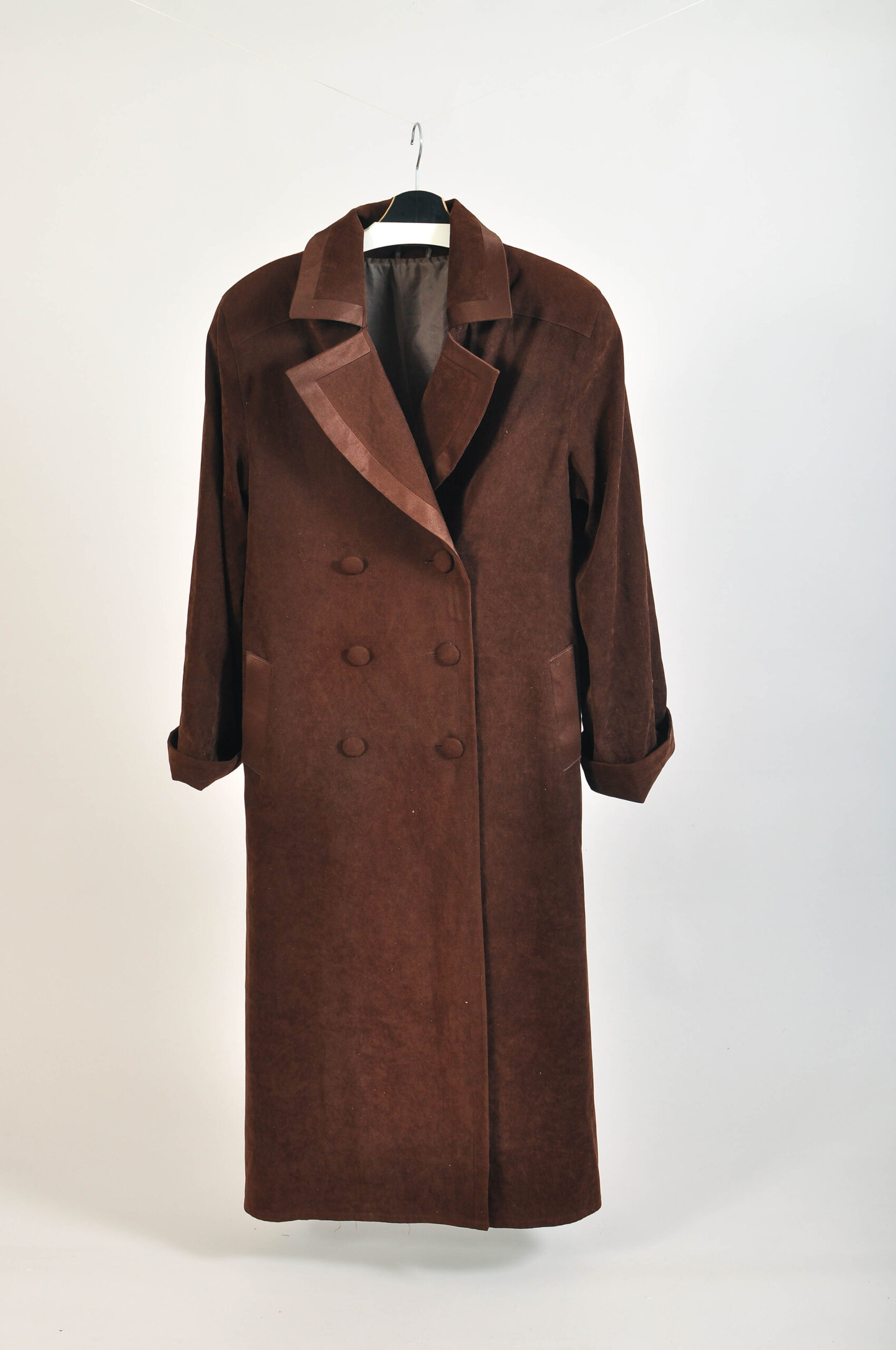 Vintage 90s maxi coat in dark brown, a timeless long-line outerwear piece perfect for creating dramatic silhouettes and effortless vintage style. Features a classic straight cut and full-length design.