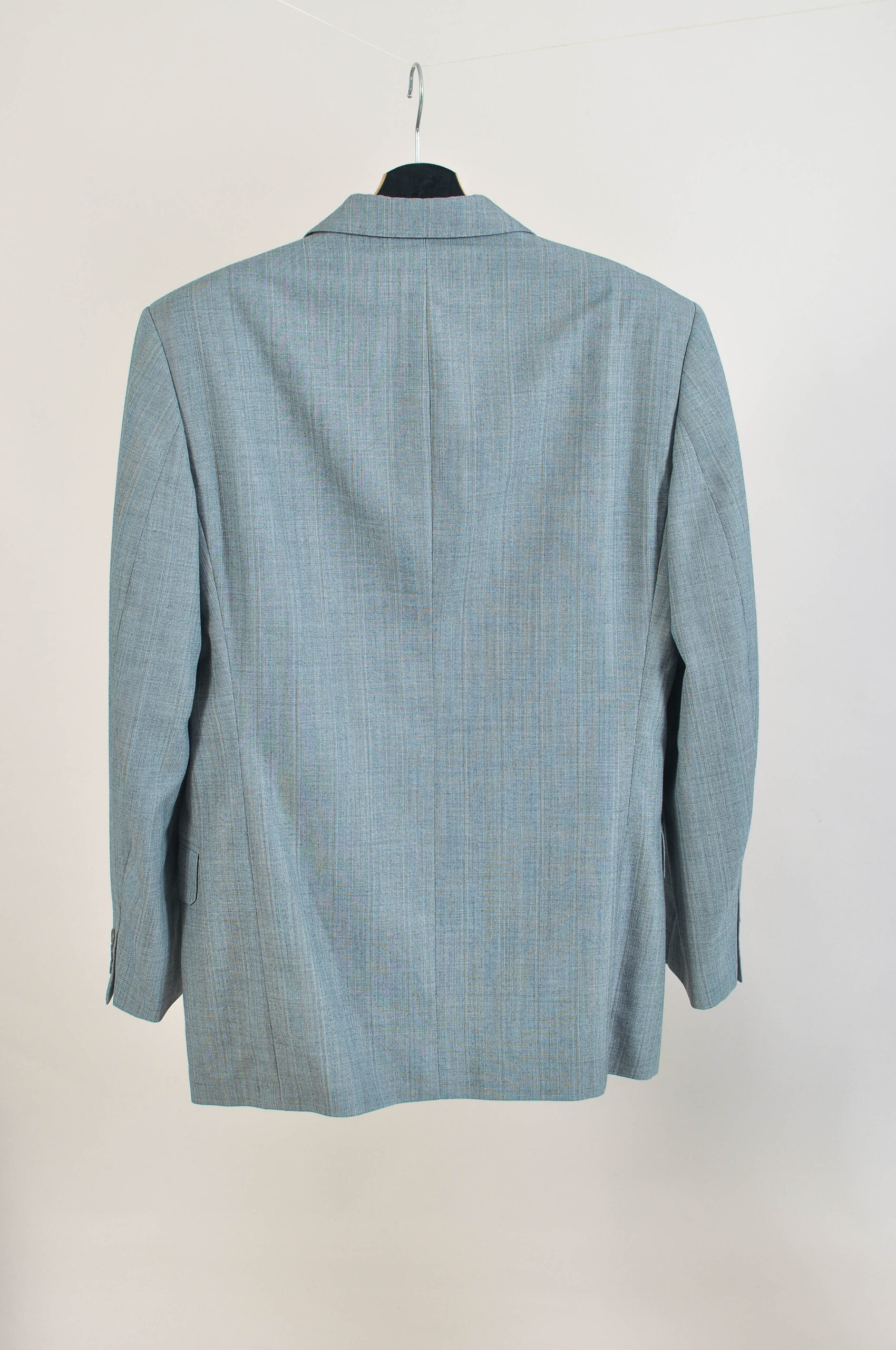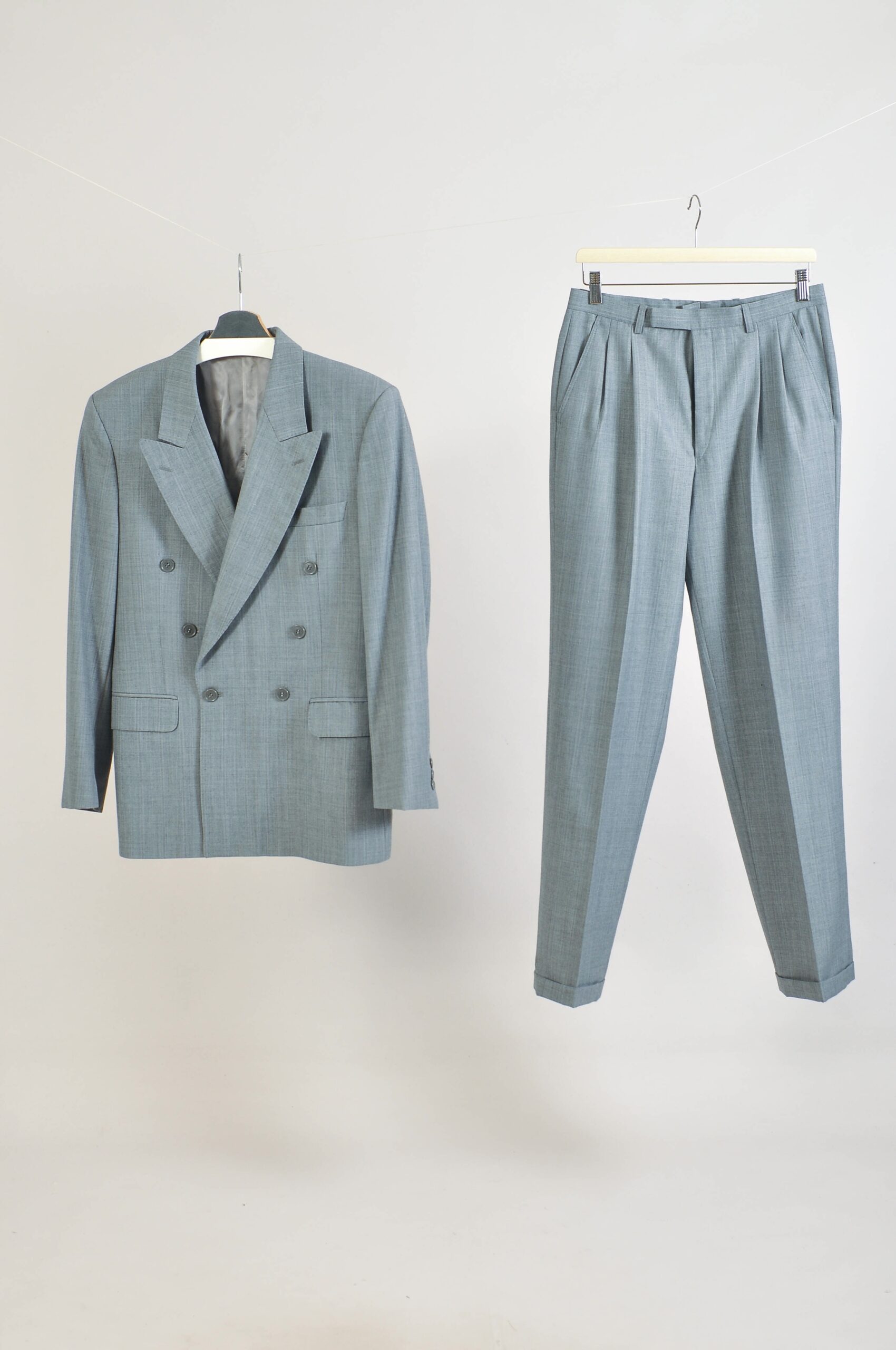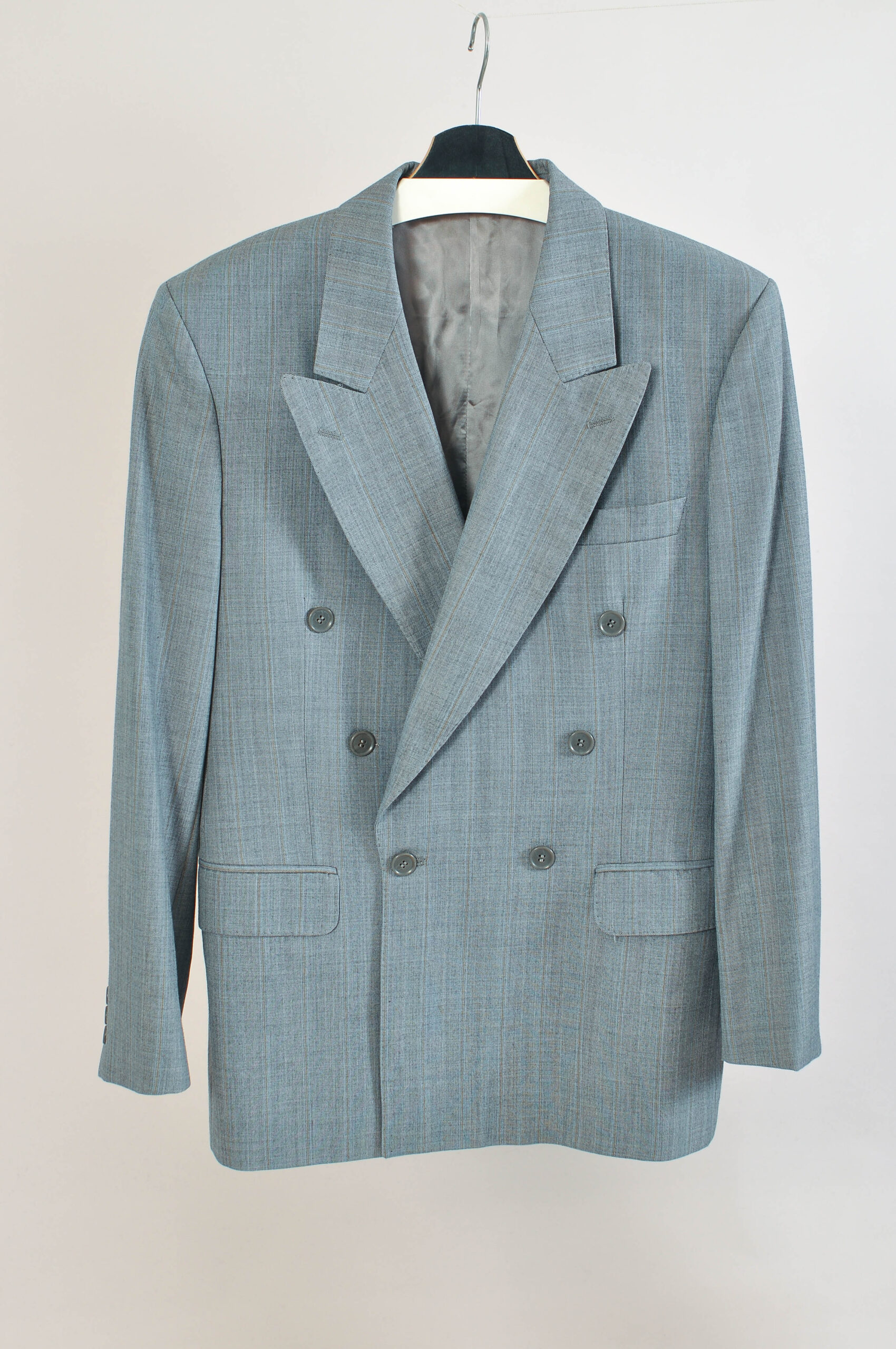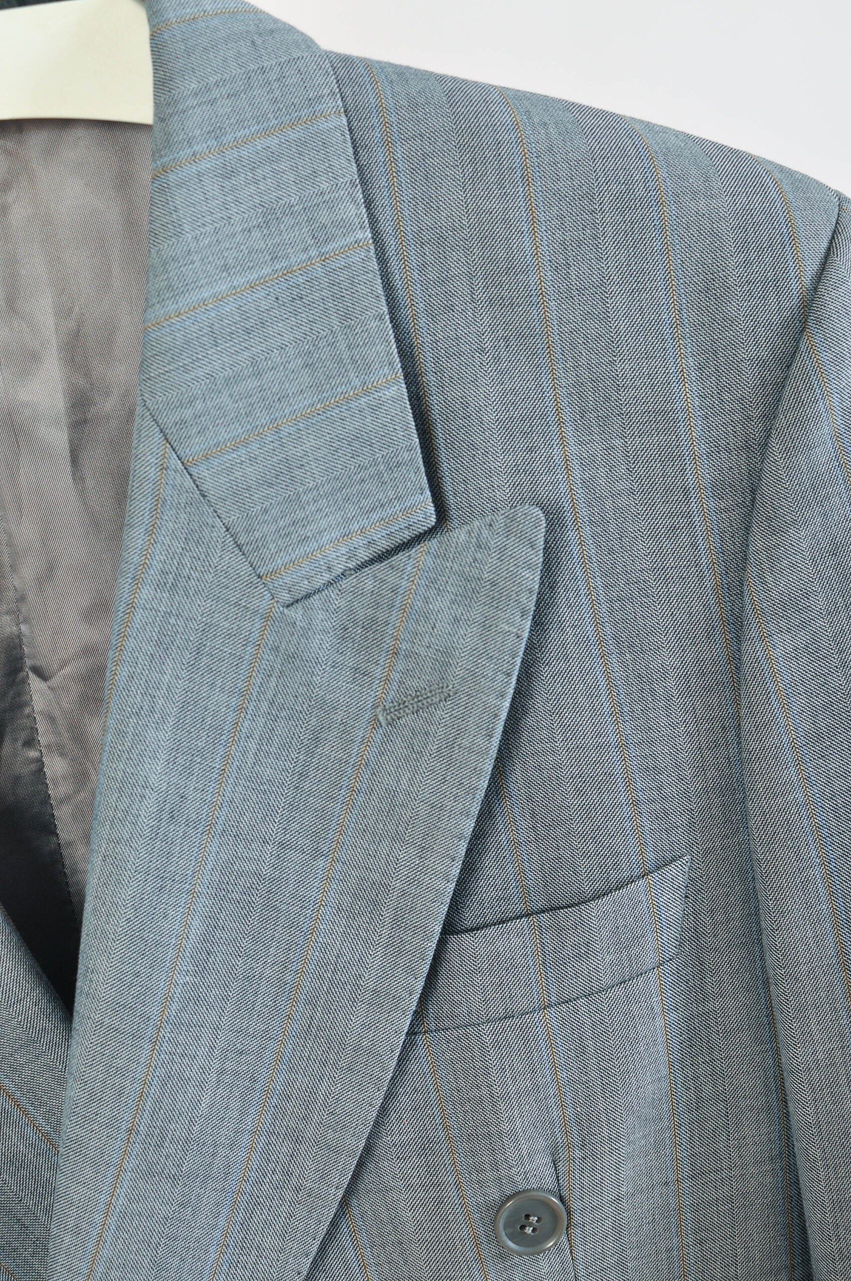 Elevate your wardrobe with this vintage 1980s Oscar Jacobson double-breasted grey striped suit, crafted in Swedenfrom premium wool. This timeless piece captures the elegance of 80s menswear — structured shoulders, clean lines, and a sophisticated pinstripe pattern that never goes out of style.