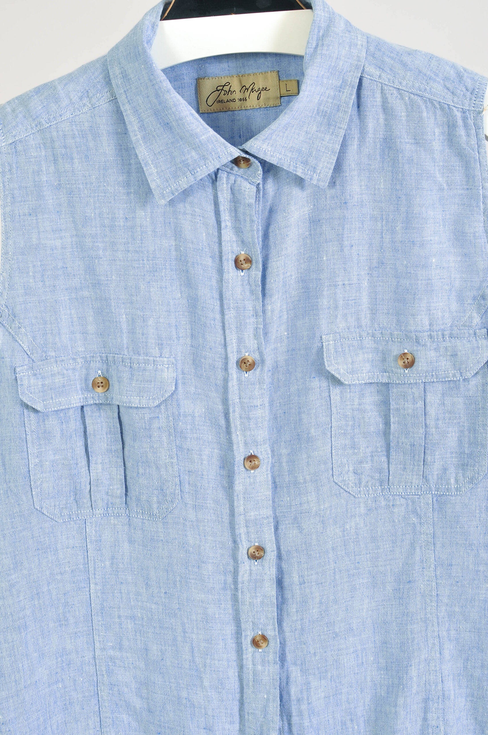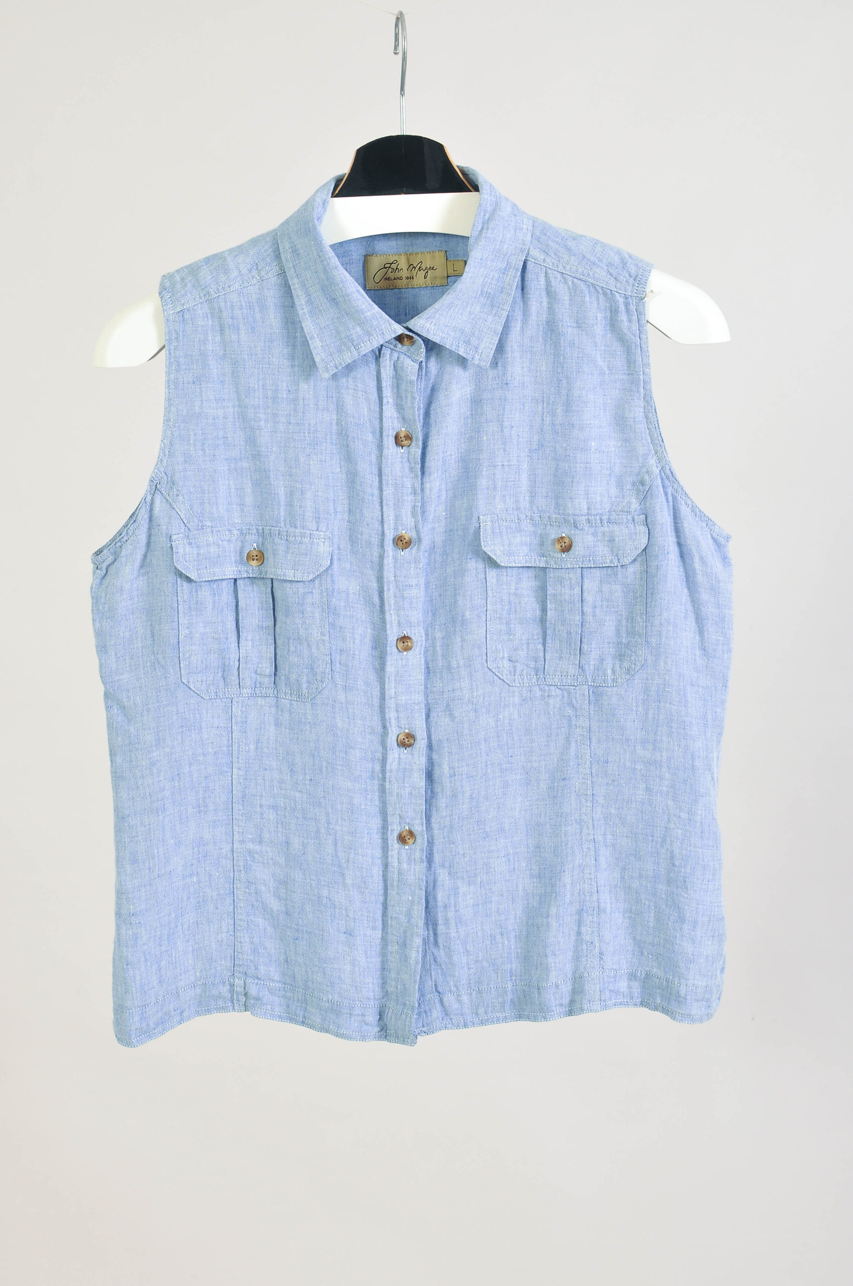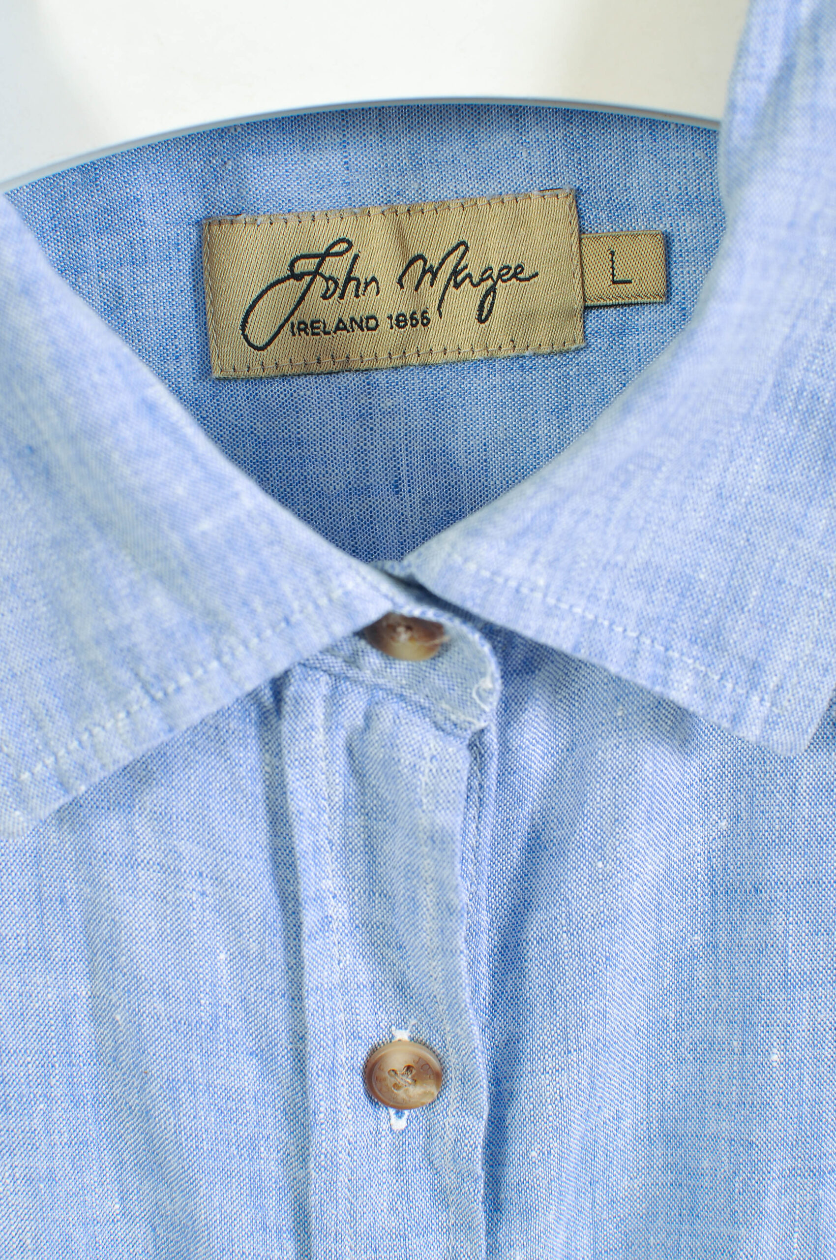 Step into effortless style with this vintage 90s John Magee linen shirt in a soft light blue shade. Crafted from breathable linen, it offers comfort and timeless elegance—ideal for layering or wearing on its own.