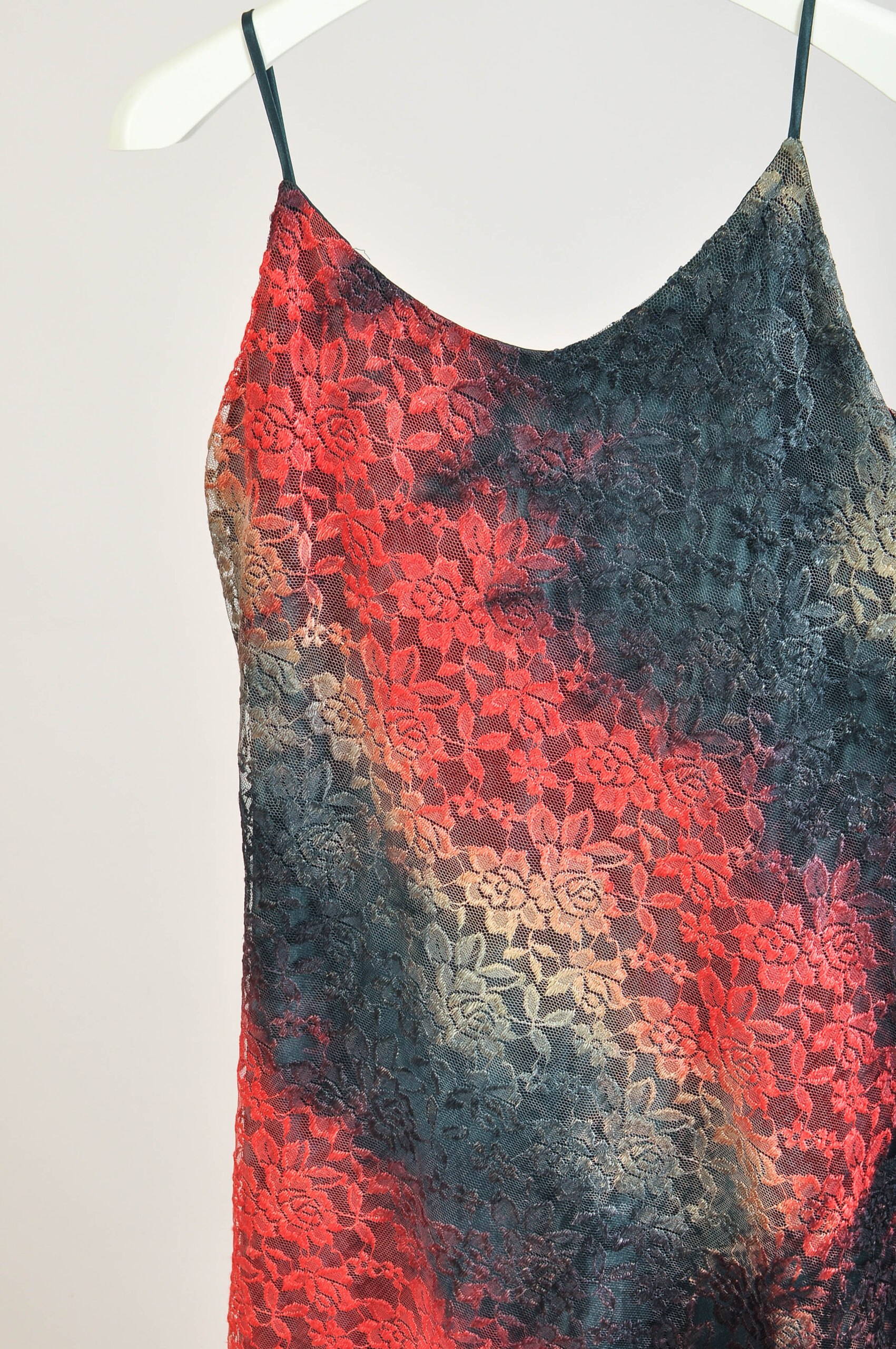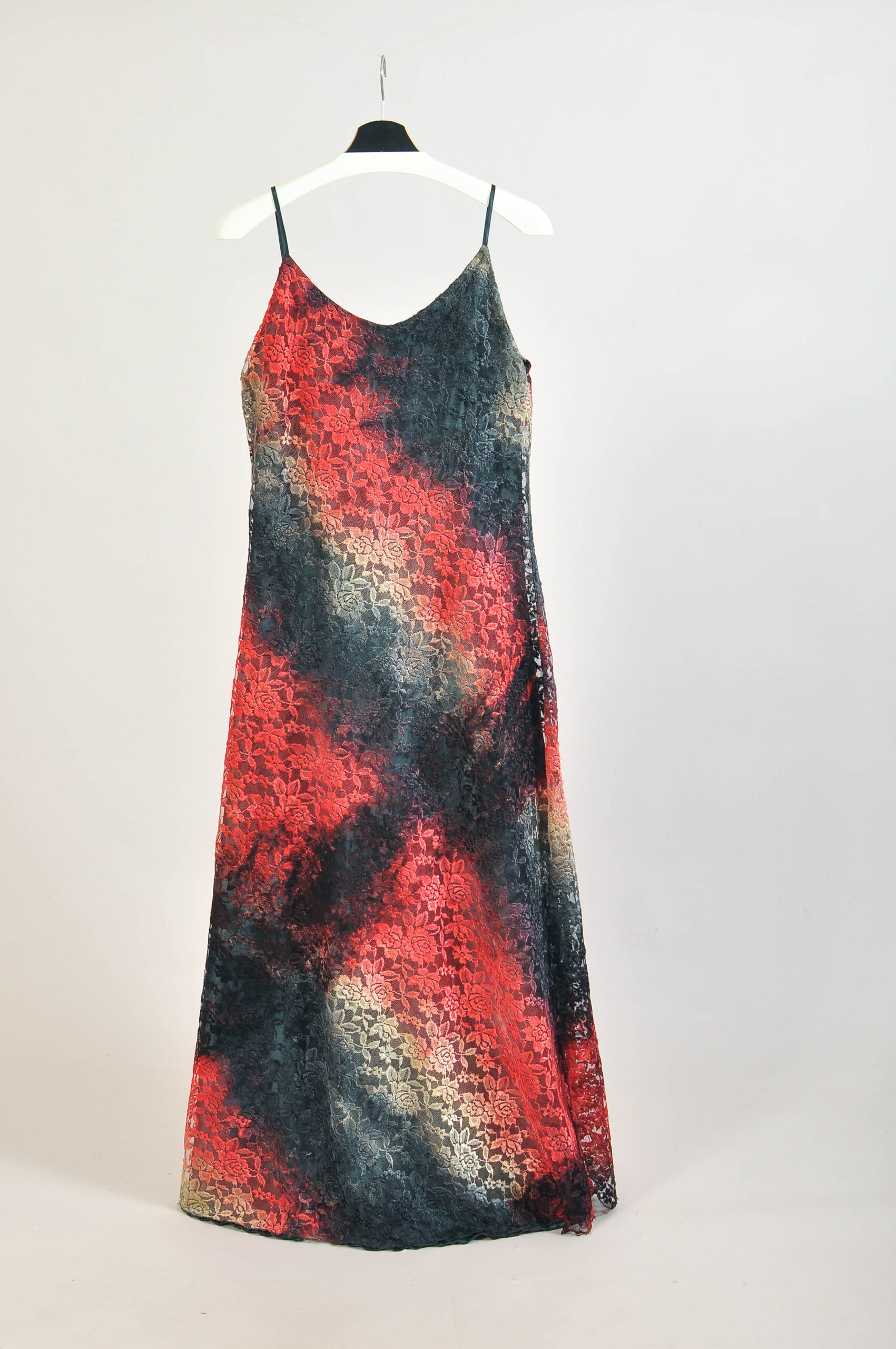 Authentic vintage 1990s maxi slip dress crafted in elegant guipure lace, featuring a long, flowing silhouette. A timeless piece ideal for evening wear or special occasions. Shows natural signs of wear consistent with vintage condition. Please check measurements for accurate fit.