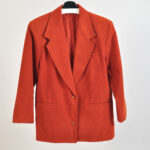 Authentic vintage 90s blazer coat in a bold orange tone, featuring a structured tailored silhouette typical of classic 1990s fashion. A standout statement piece perfect for smart styling, retro outfits, or adding color to minimalist looks.