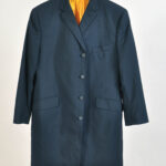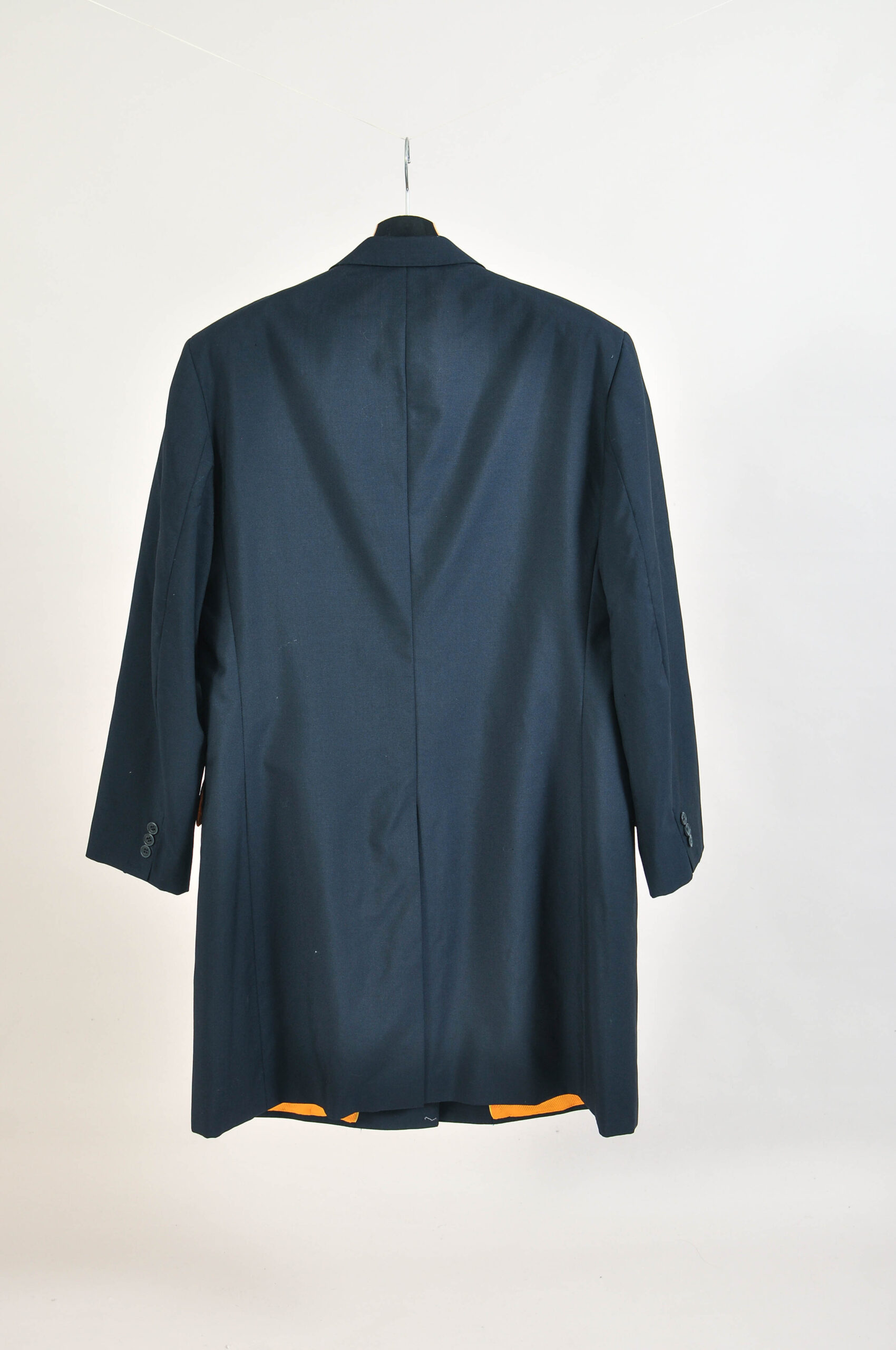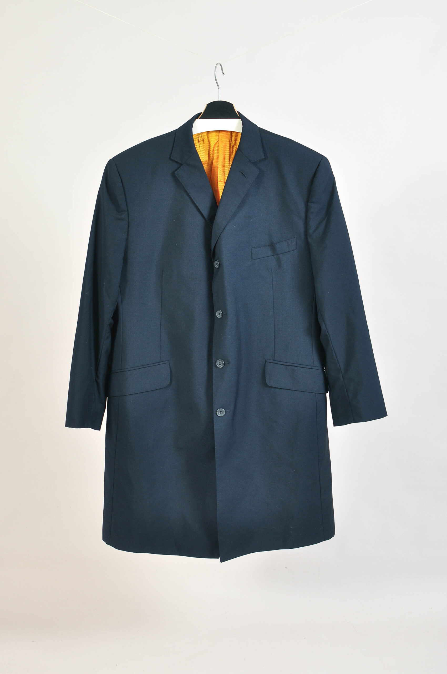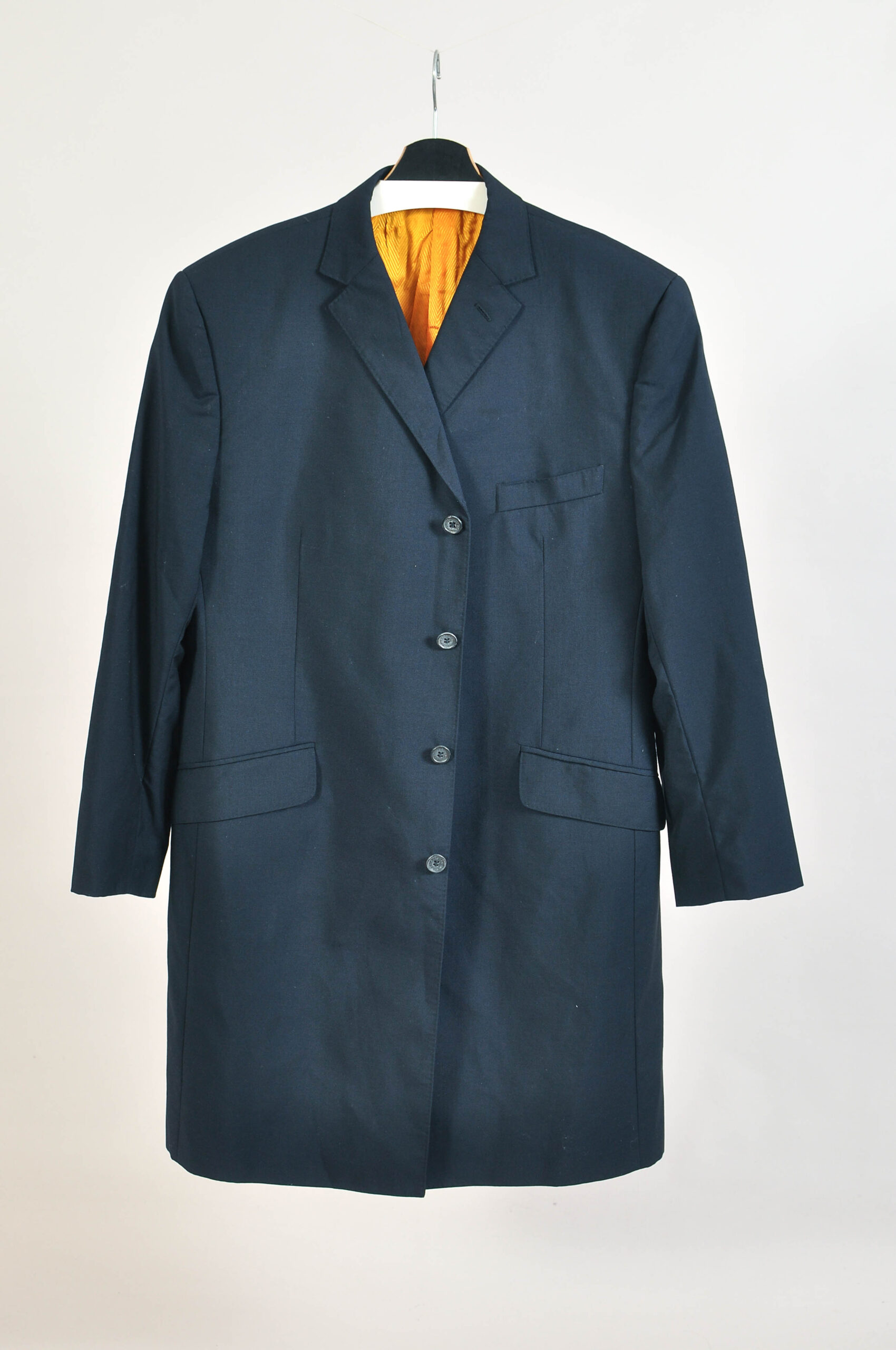 A true piece of Savile Row history – this Vintage 90s Bespoke Couture by Ozwald Boateng jacket/coat in deep navy captures the bold elegance of Boateng’s tailoring. Handcrafted between 1996 and 2000, this coat is made from a luxurious 84% wool and 16% mohair blend, offering warmth, comfort, and a subtle sheen.