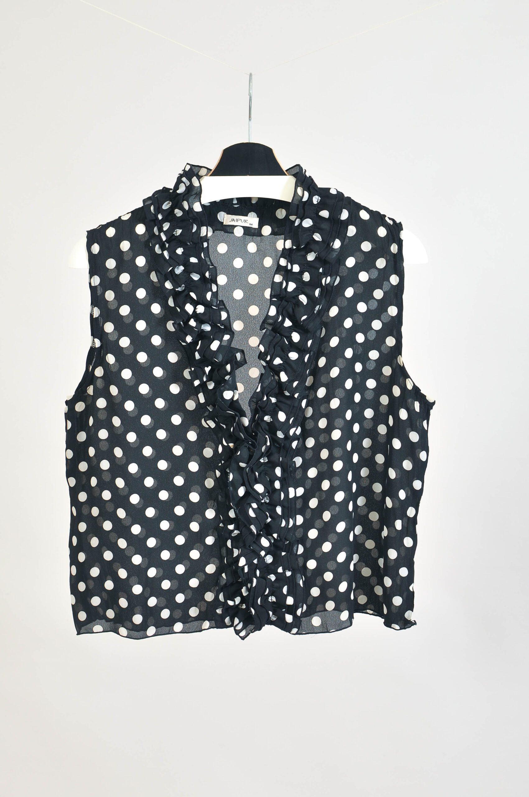 Playful yet elegant, this vintage 90s blouse by Jaipur features timeless polka dots and feminine ruffle detailing. A standout piece in very good condition, with only natural signs of wear typical for vintage garments.