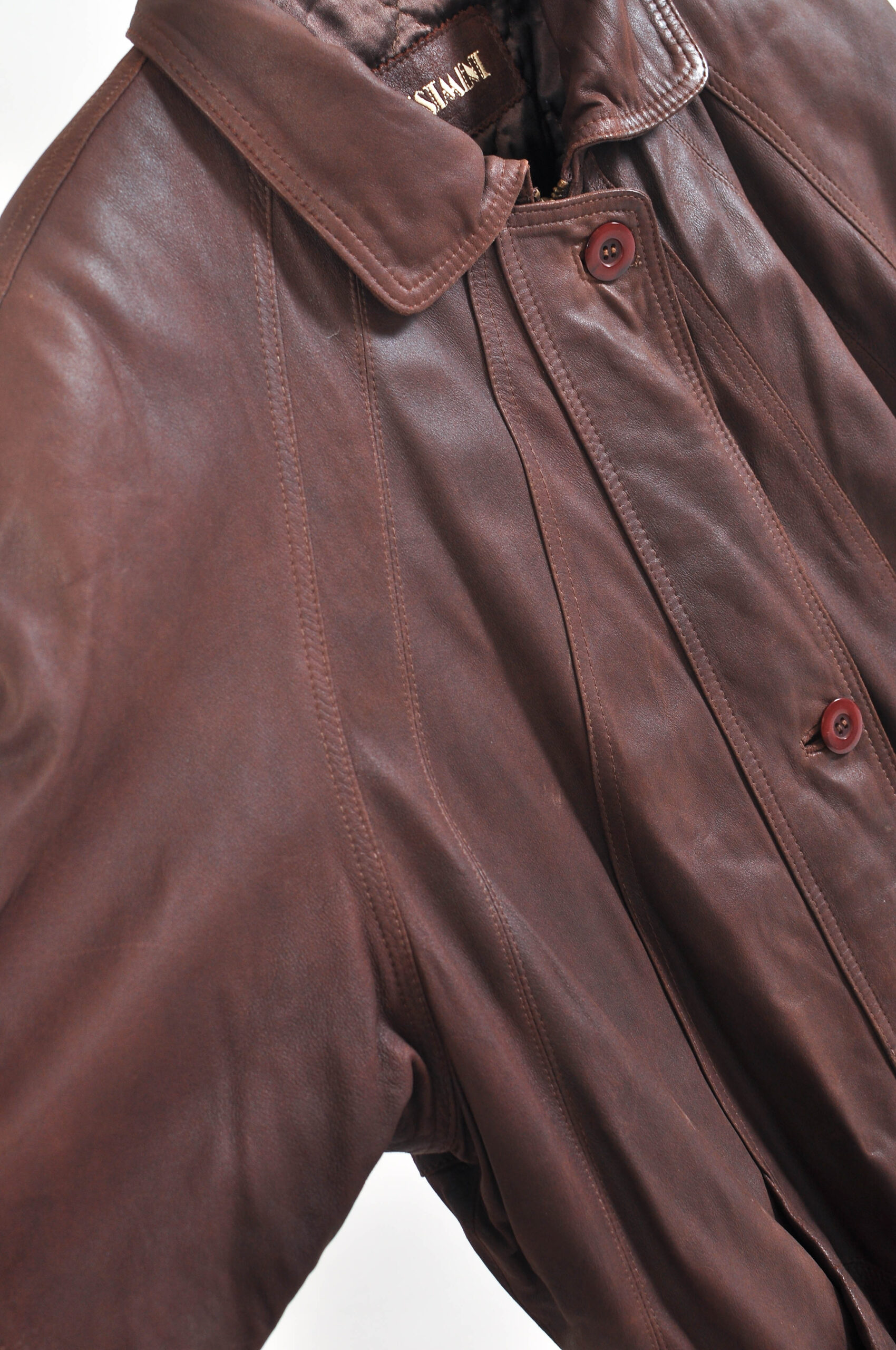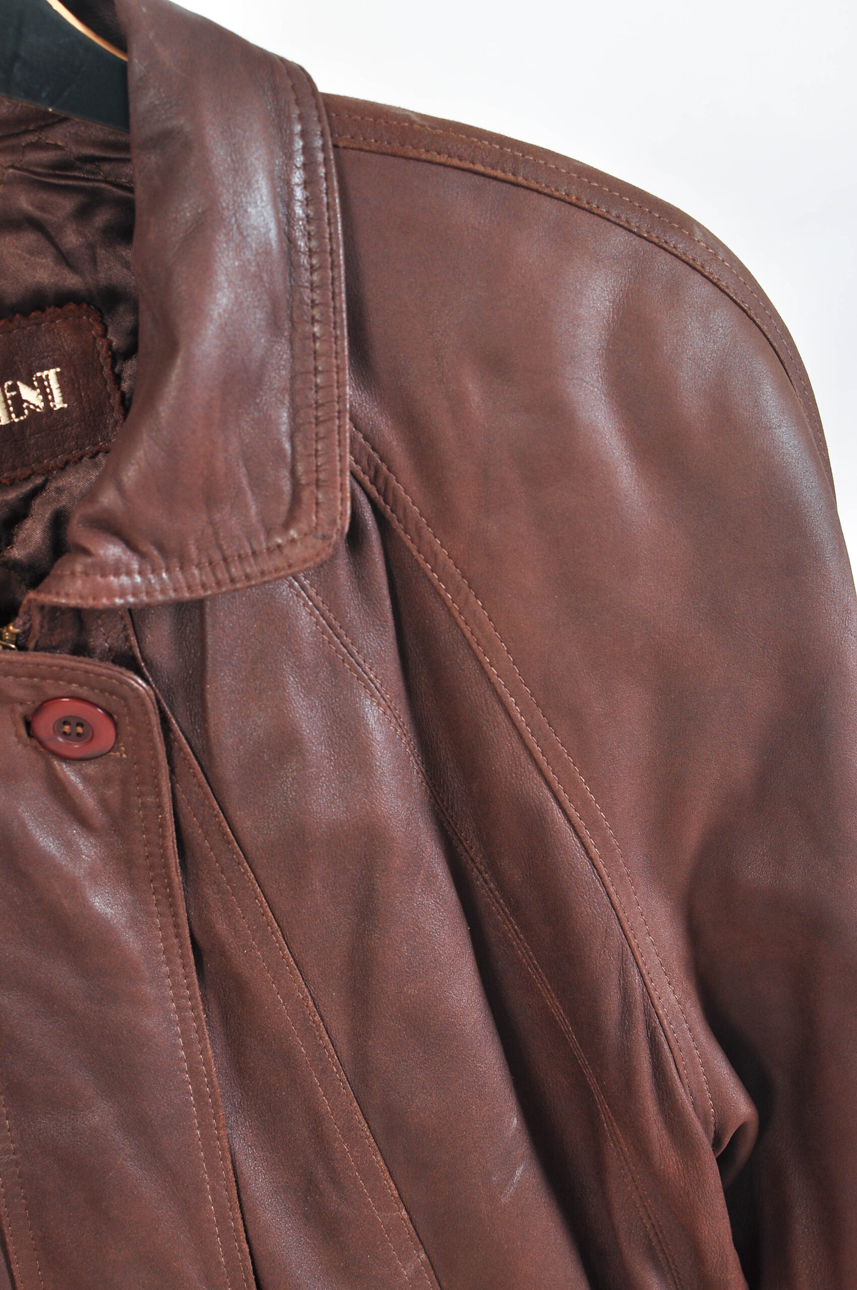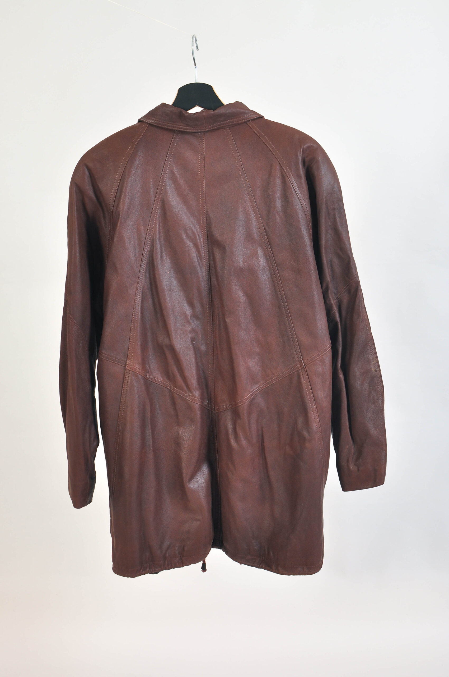 Vintage 90s Real Leather Oversized Coat in Brown – Timeless & Chic
