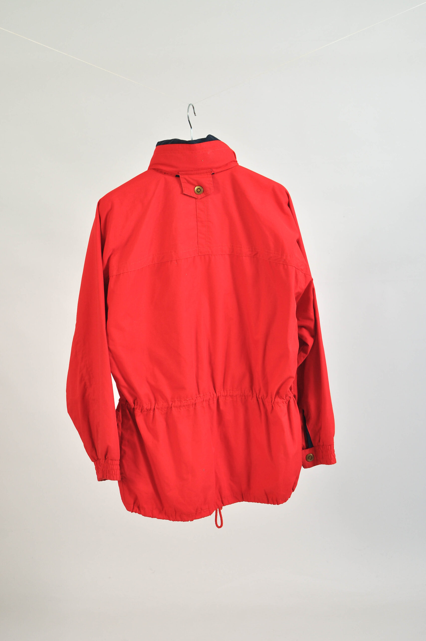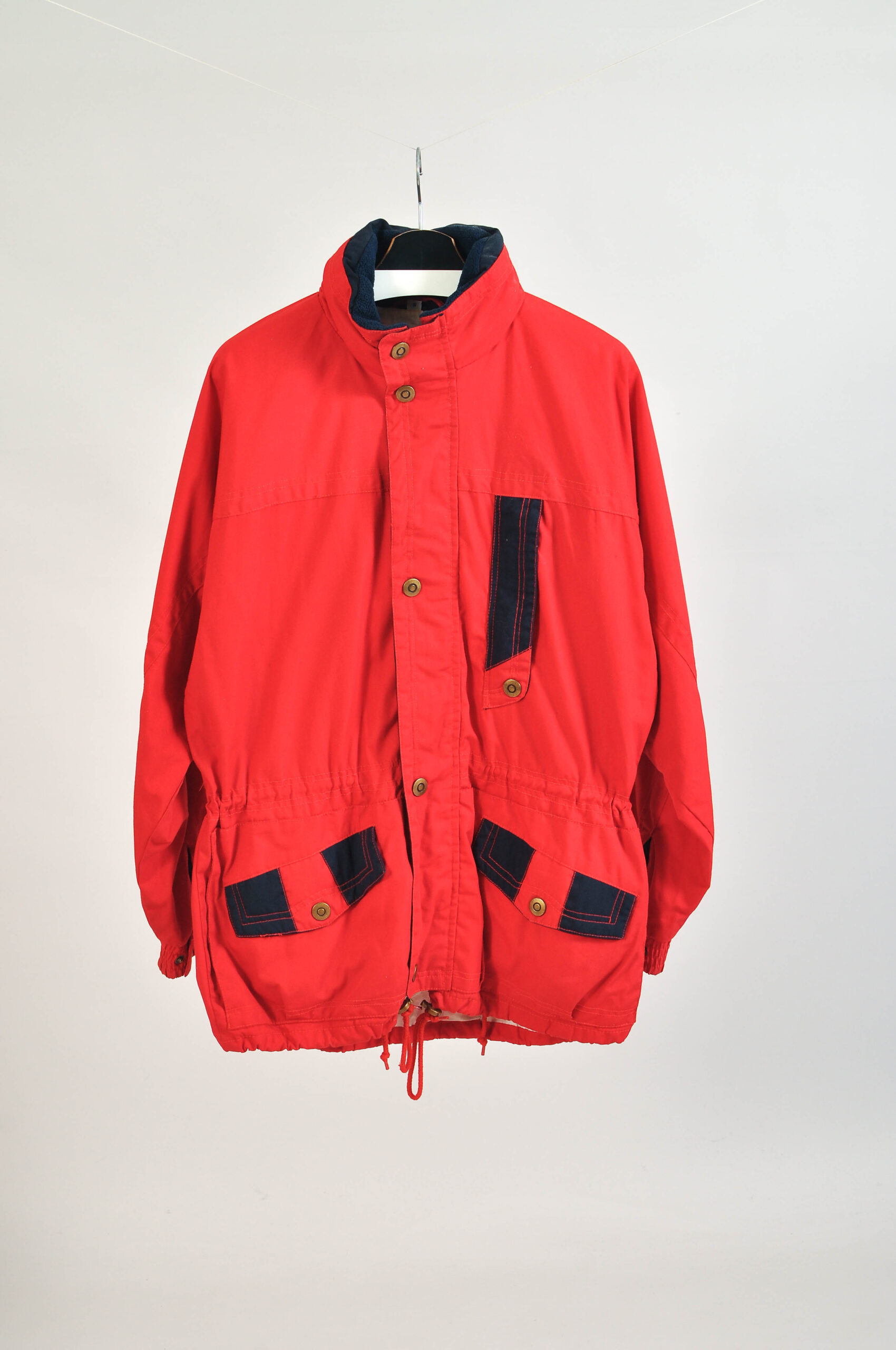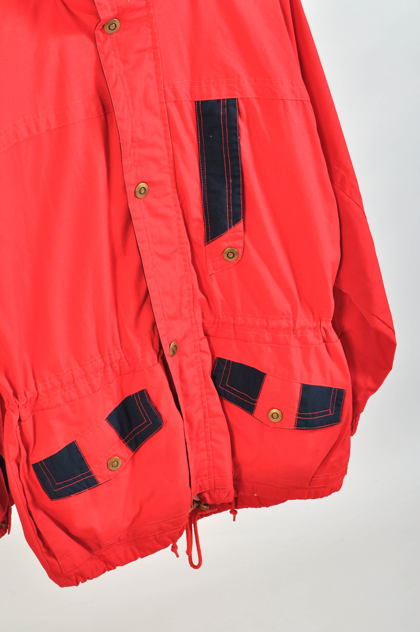 Bold and functional vintage 90s red parka jacket by Kandahar, made in Norway, featuring a practical design and relaxed fit. A reliable outerwear piece built for both style and comfort.