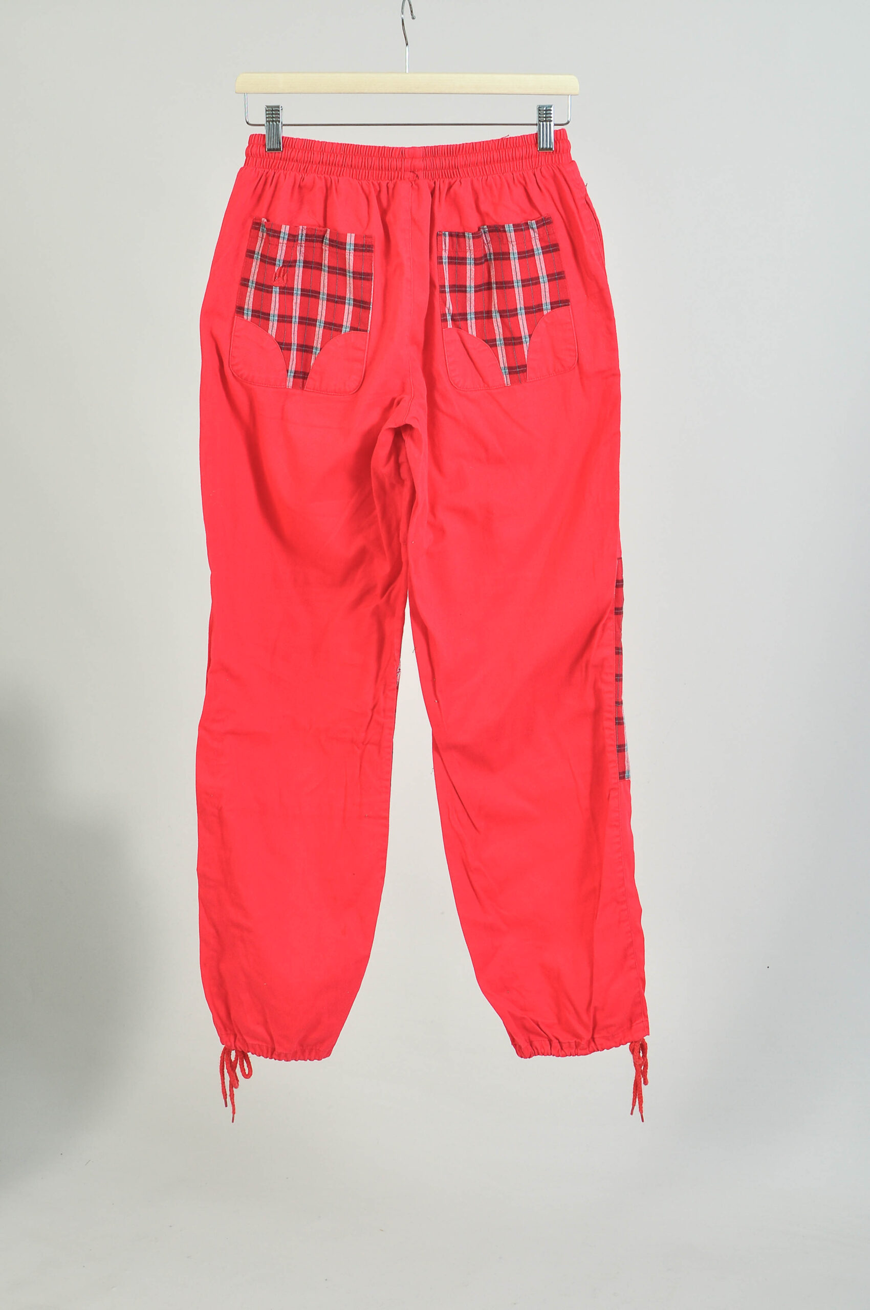 Authentic vintage 90s red track joggers featuring a classic sporty silhouette and relaxed fit. A bold retro staple perfect for casual wear, athleisure styling, or 90s streetwear looks.