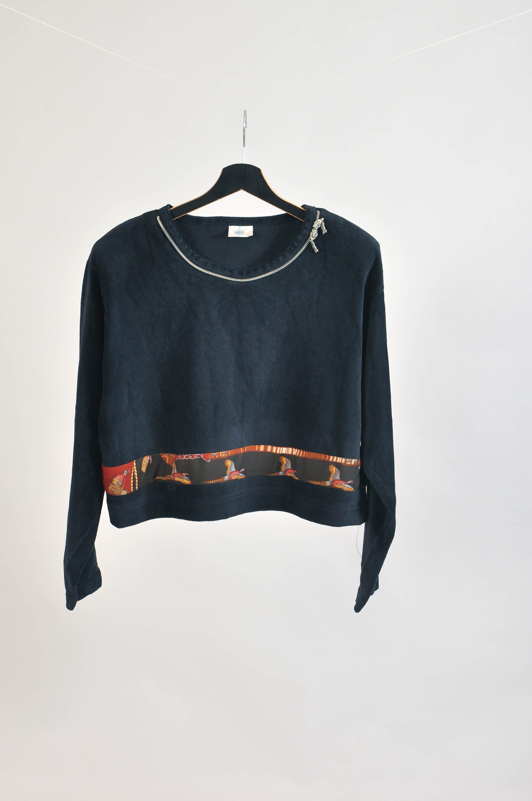 Vintage 90s Reworked Navy Velvet Jumper – Size M-XL