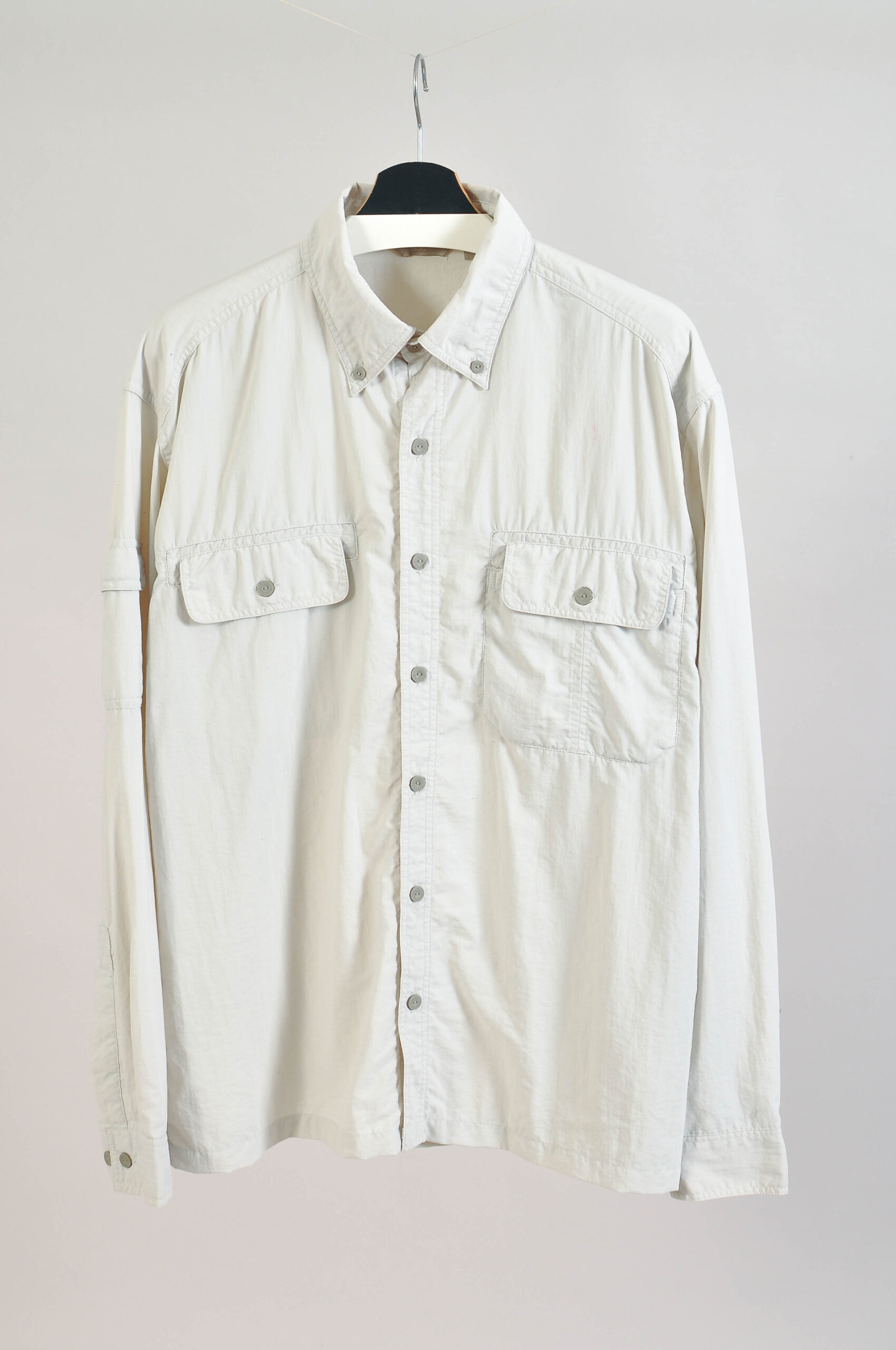 Authentic vintage 00s cream shirt featuring a clean minimalist silhouette and relaxed early-2000s fit. A versatile wardrobe staple perfect for smart-casual styling, layering, or classic everyday wear.