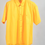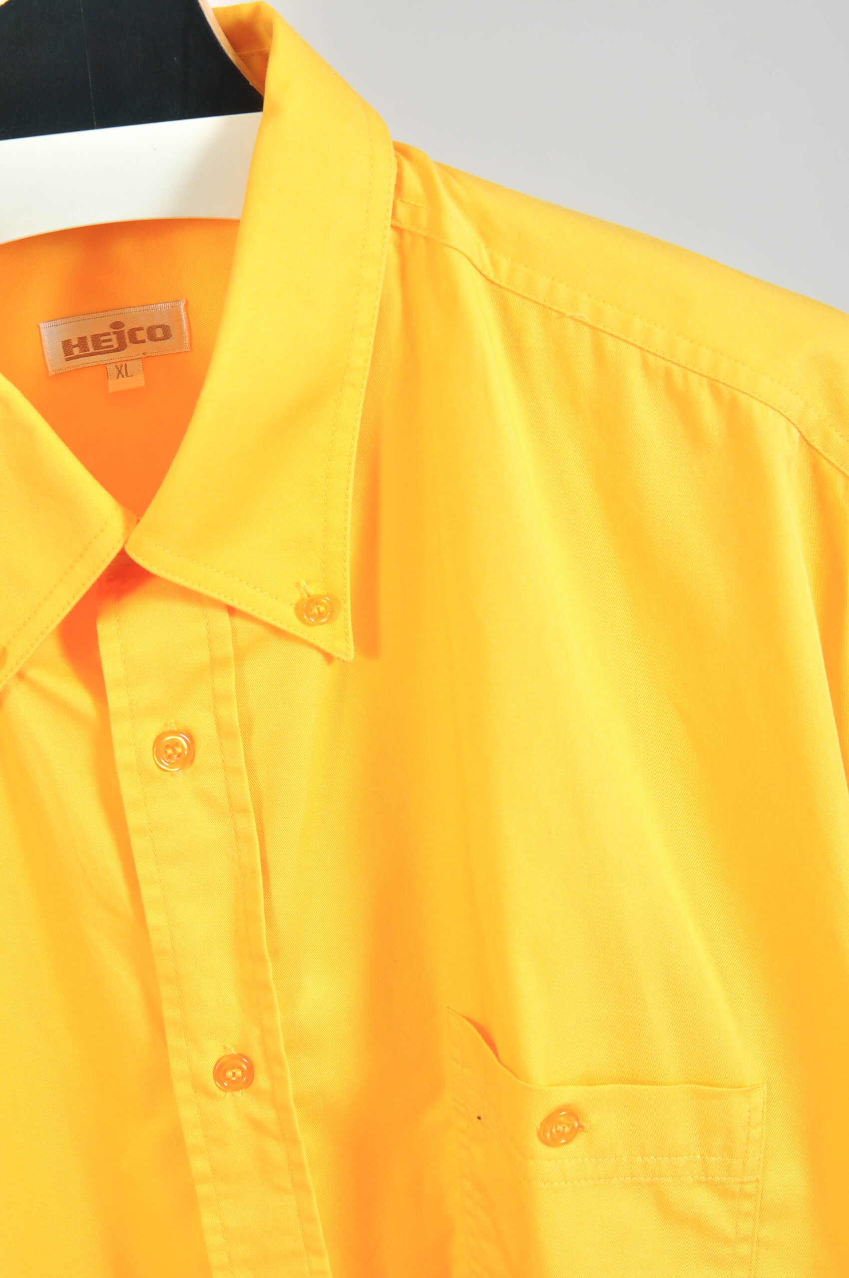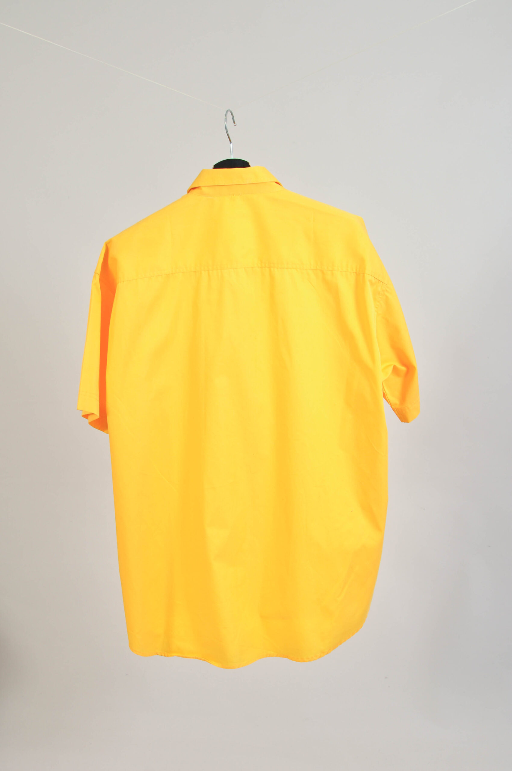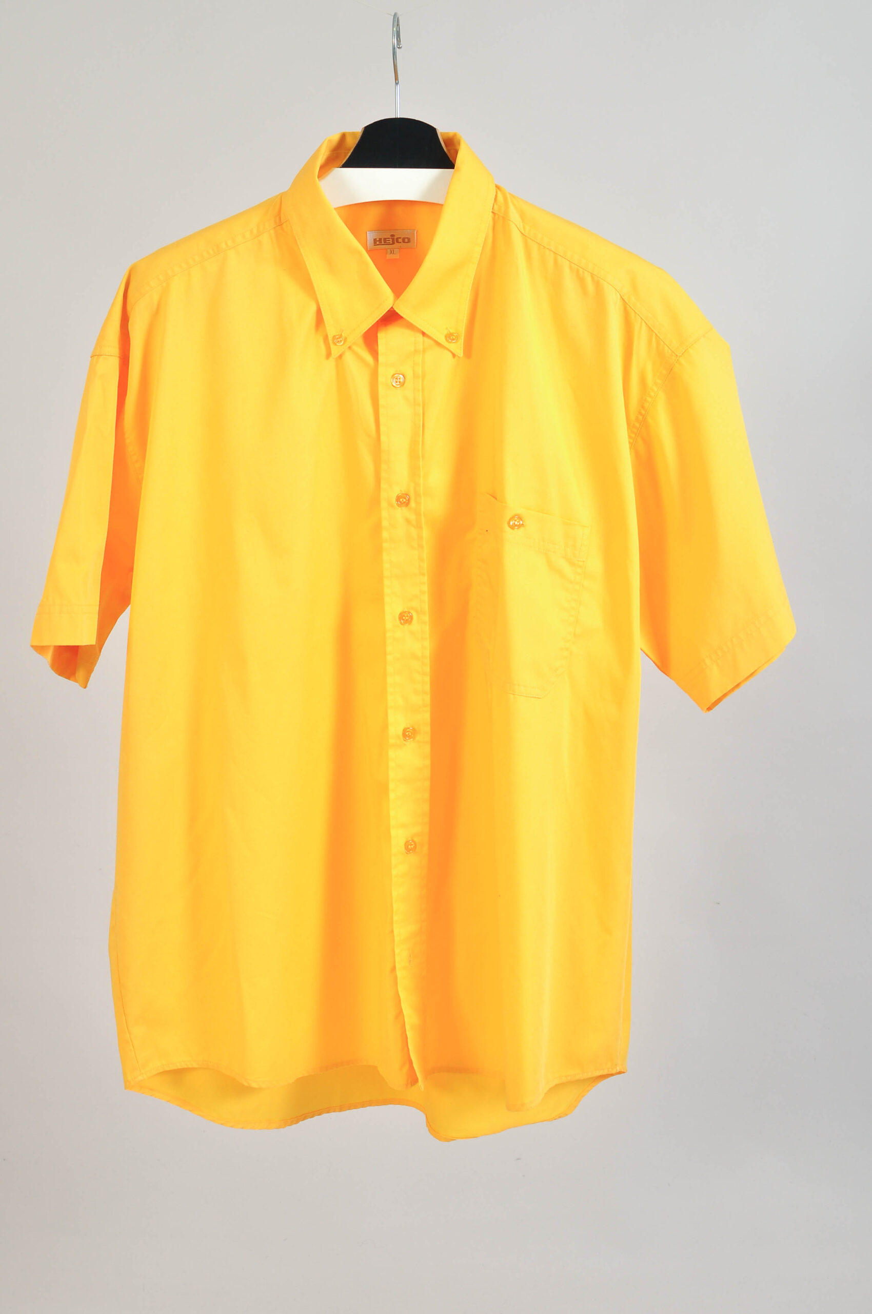 Bring a burst of color to your wardrobe with this vintage 1990s oversize yellow short sleeve shirt by Hejco. Featuring a relaxed XL fit and classic button-up style, this bold piece embodies the carefree energy of the 90s while offering endless styling possibilities.
