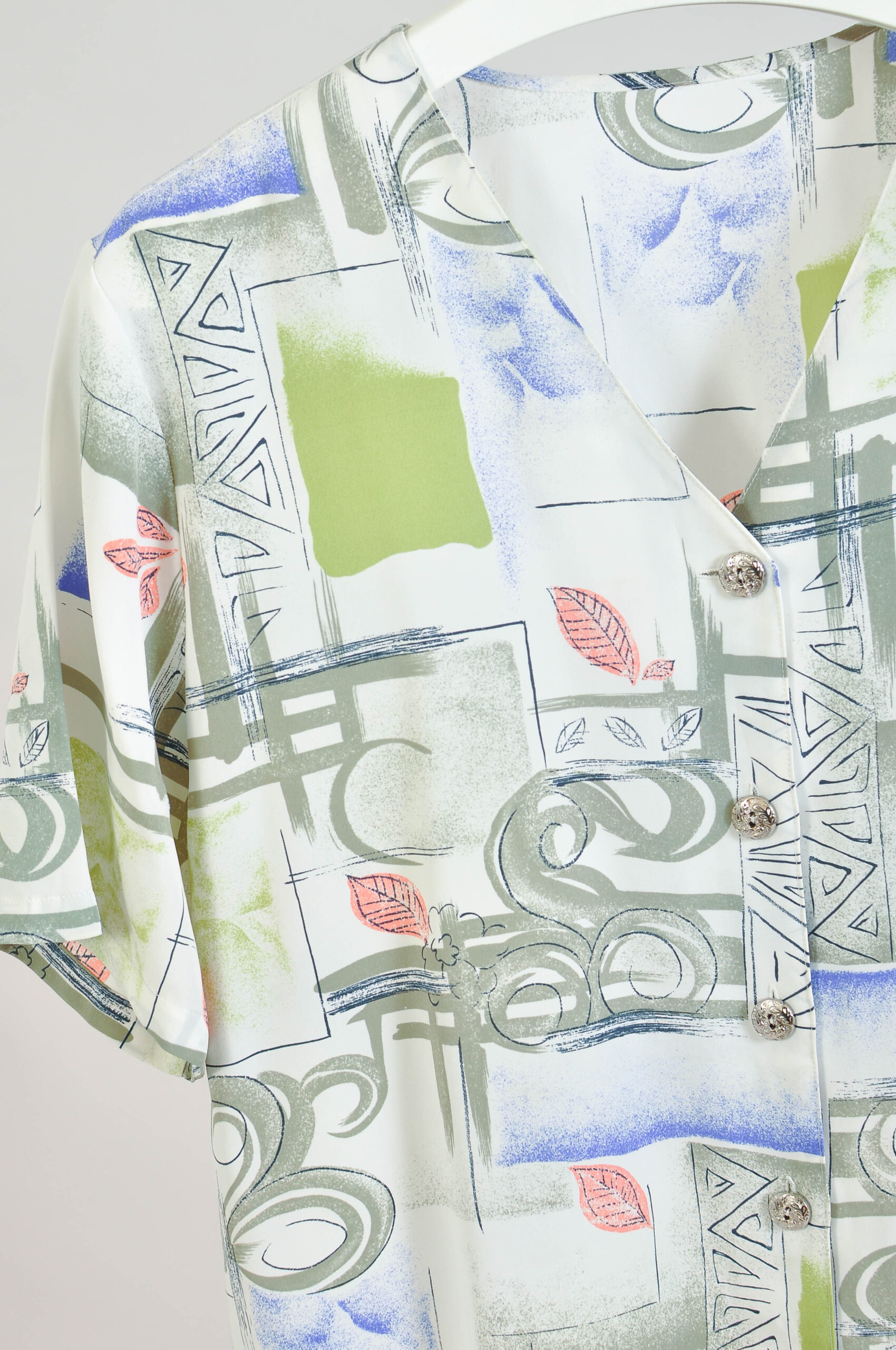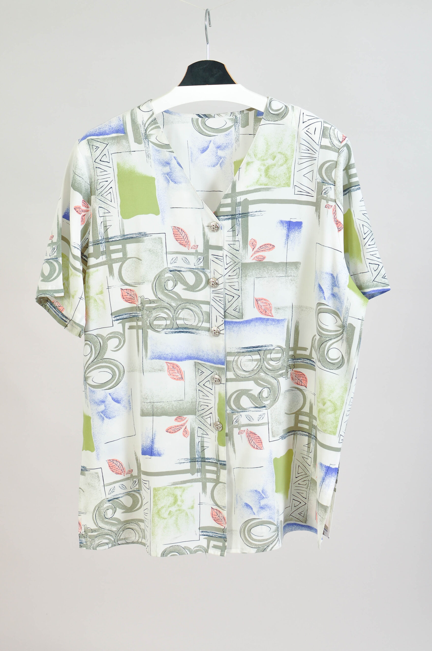 Classic vintage 90s short sleeve blouse featuring a relaxed silhouette typical of 1990s fashion. Its simple and versatile design makes it easy to style for both casual and everyday outfits.