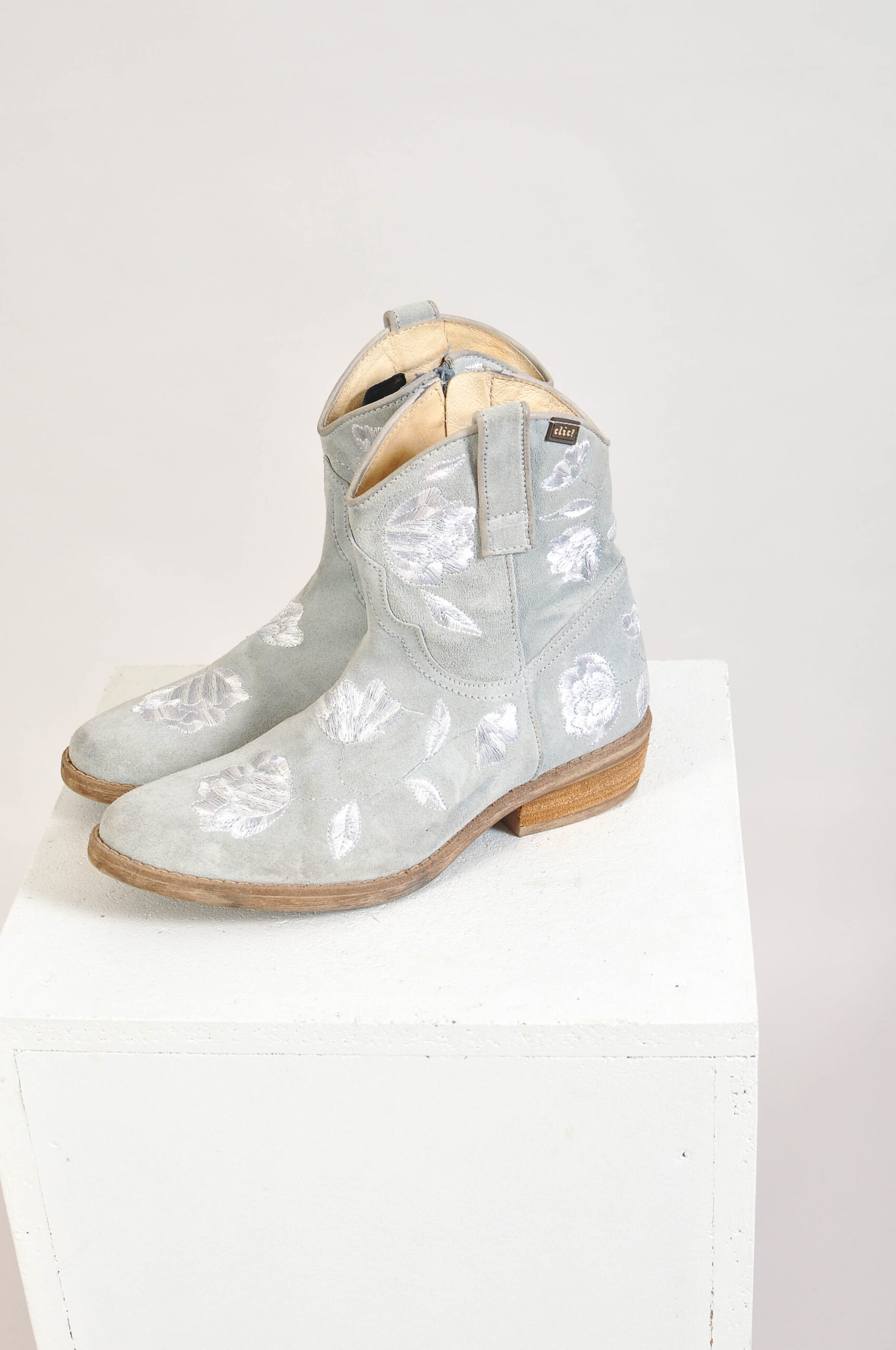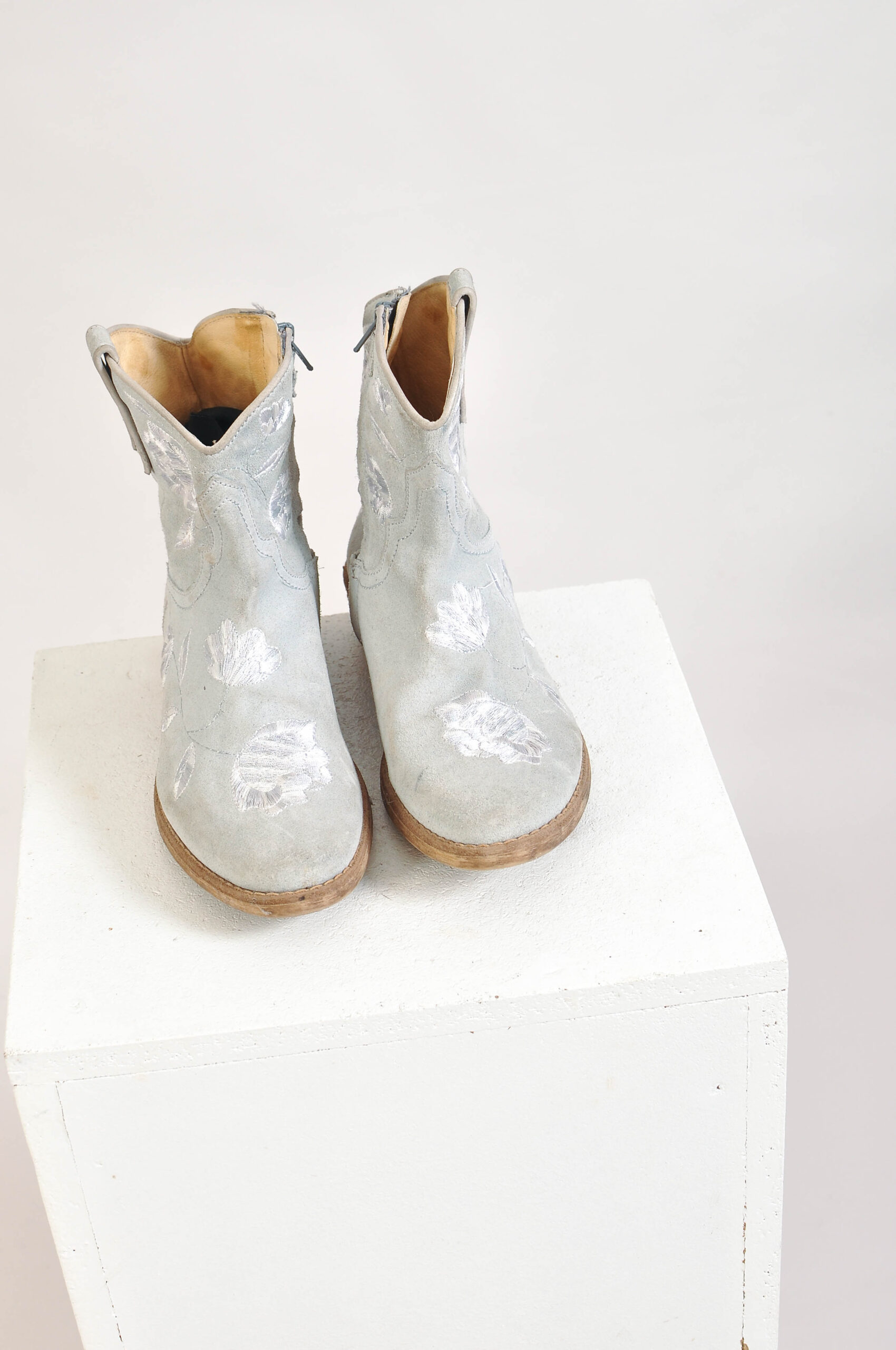 Vintage 90s Suede Leather Cowboy Boots – Light Grey