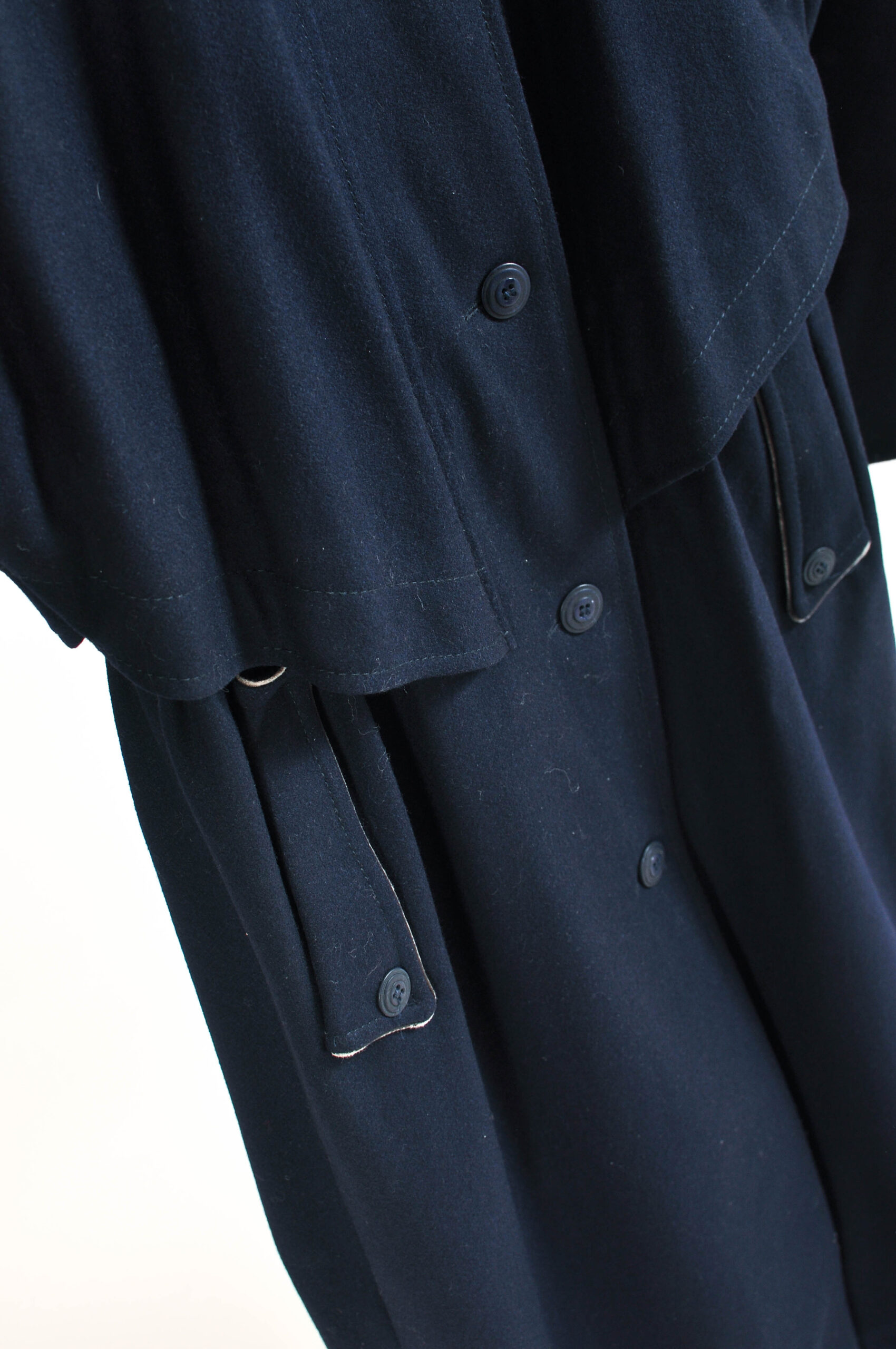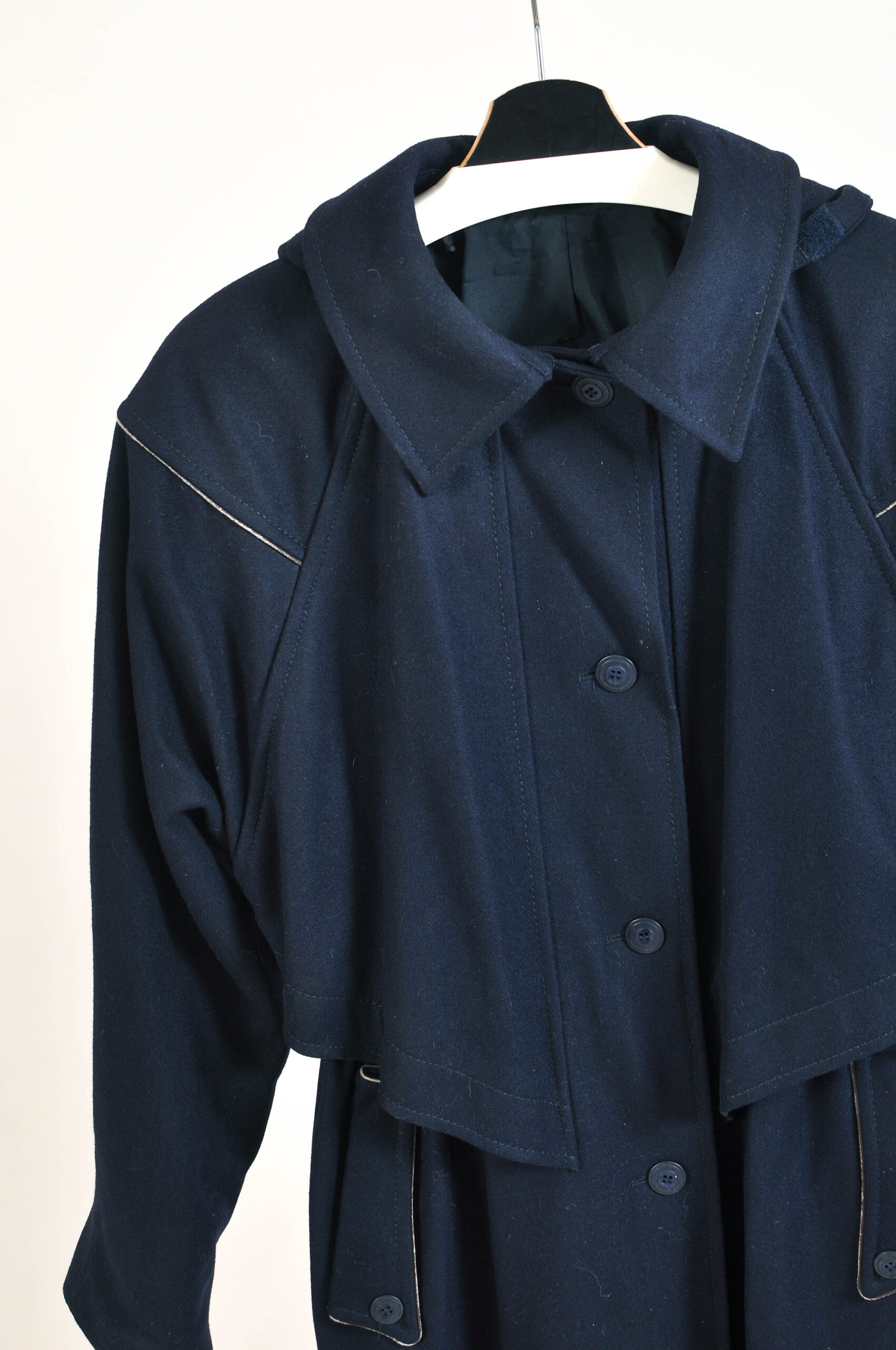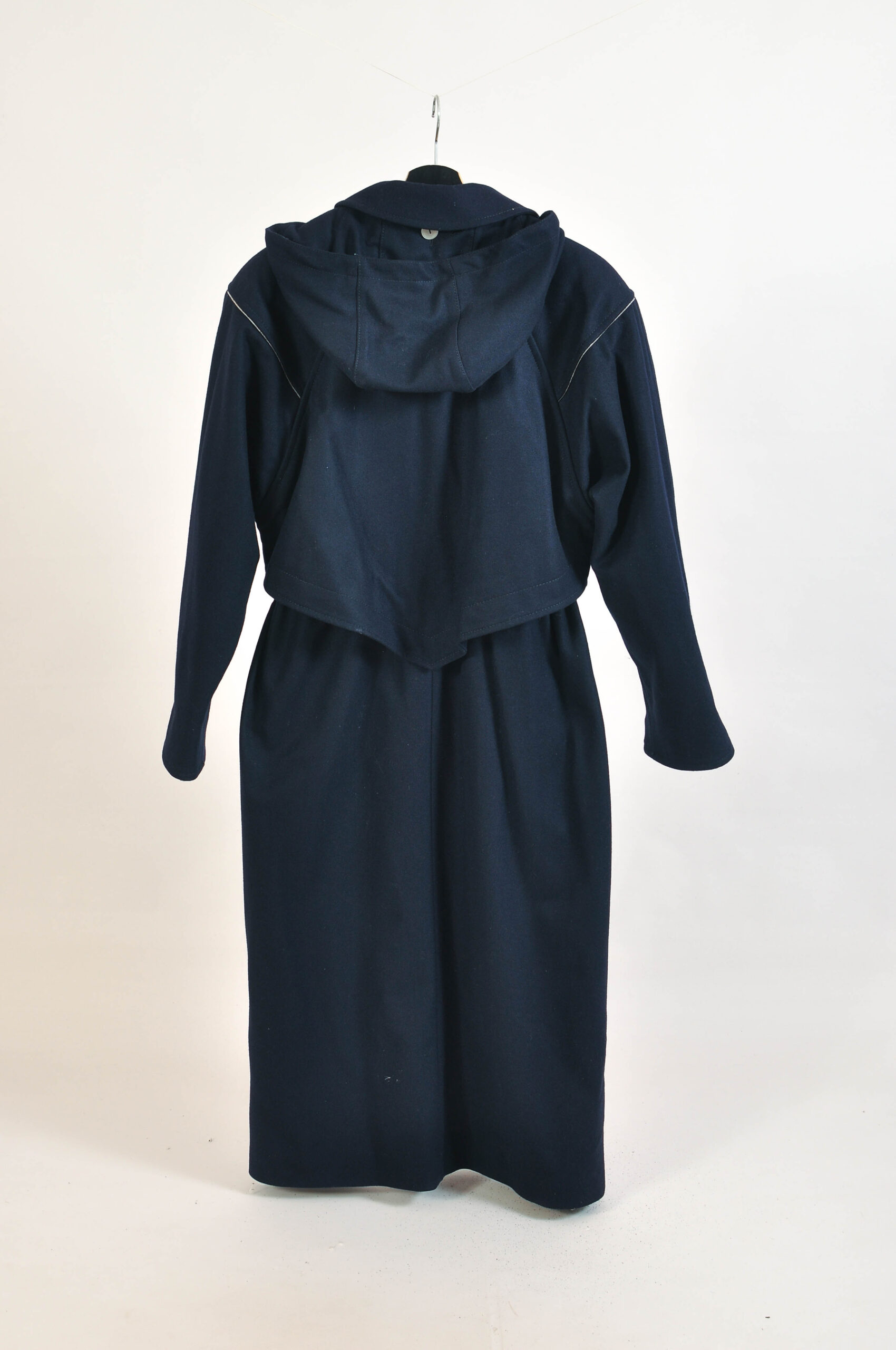 Vintage early 80s dark blue maxi coat by Scandia Norse Design. A beautifully structured long wool coat with a classic silhouette — elegant, warm, and timeless.
