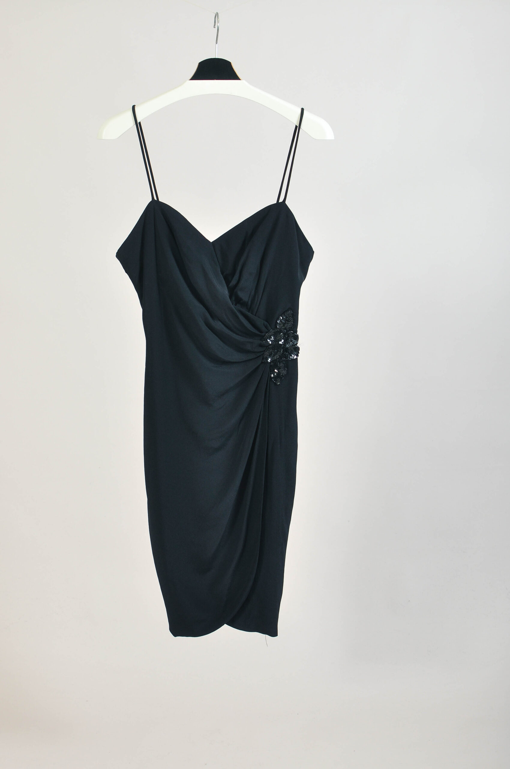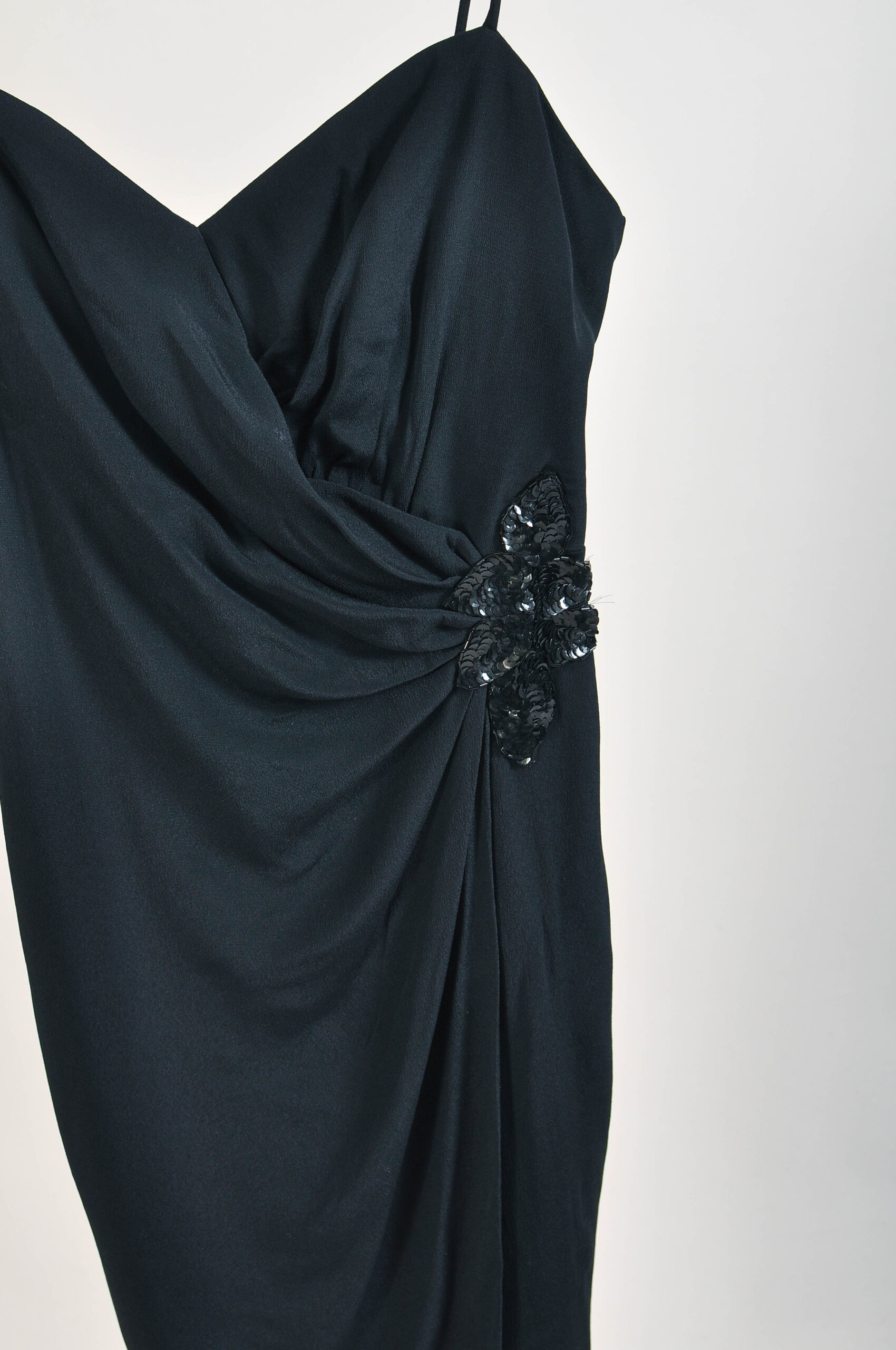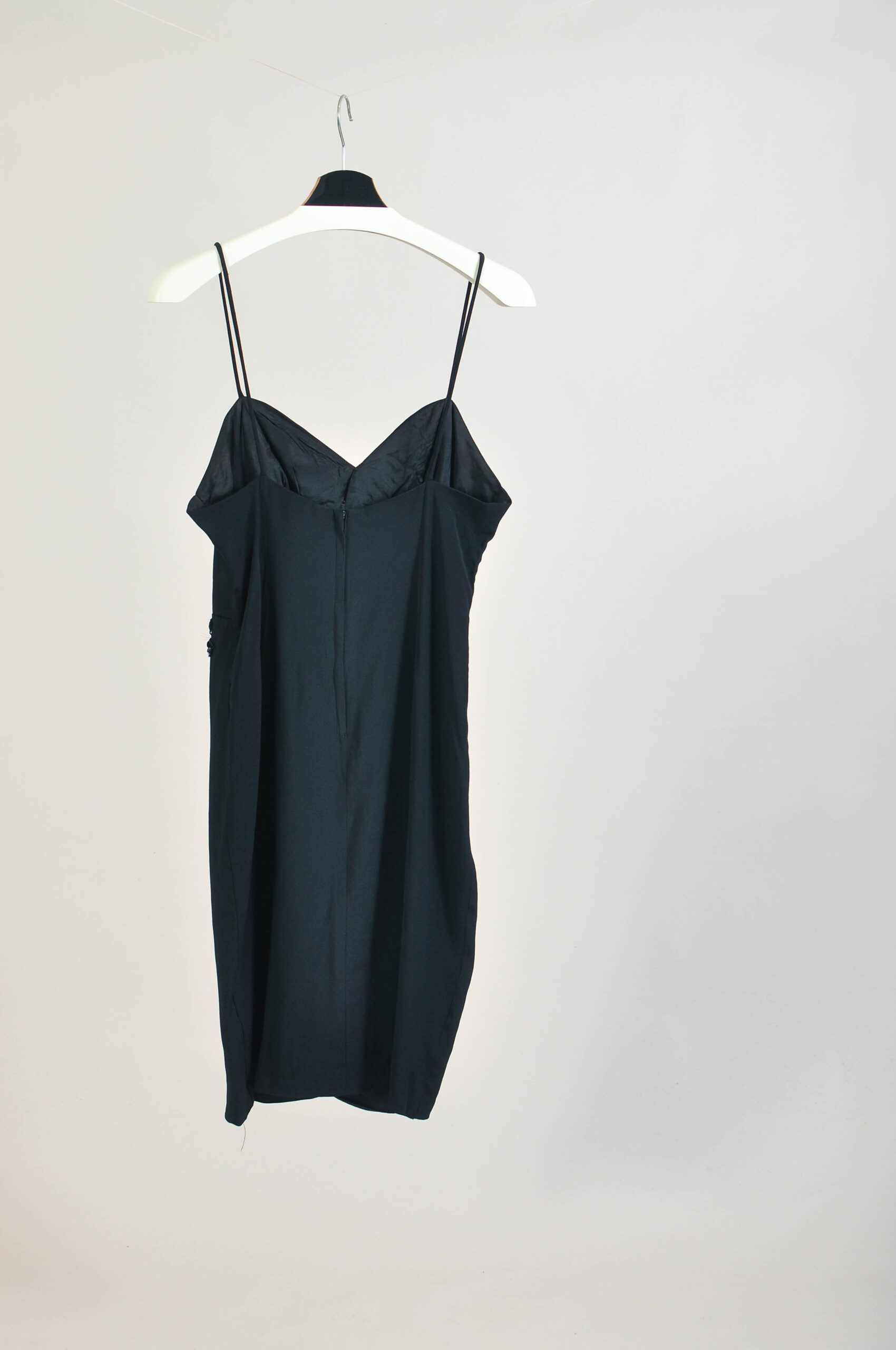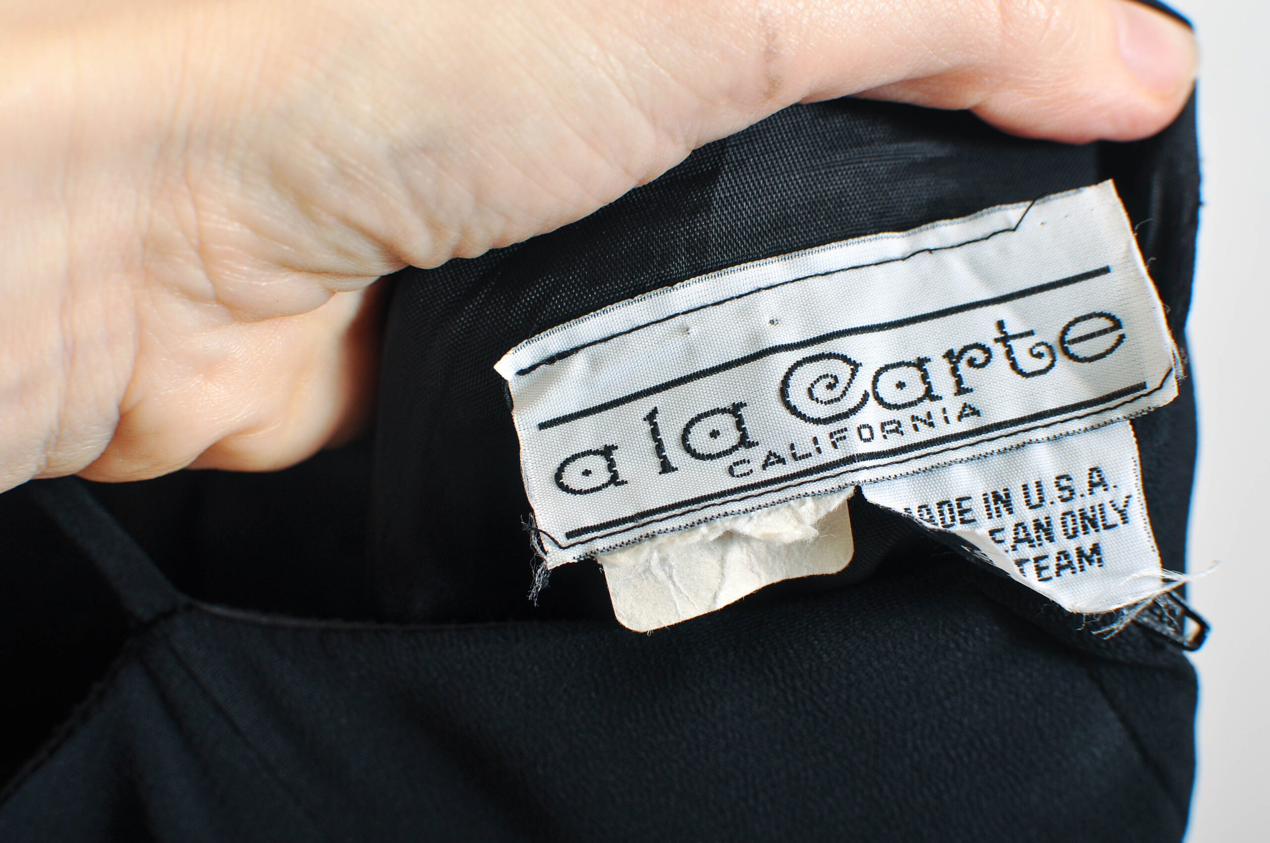 Authentic vintage late 1980s black slip dress by A La Carte California, made in the USA. A timeless, minimalist silhouette perfect for layering or evening wear. Shows natural signs of wear consistent with vintage condition. Please check measurements for accurate fit.