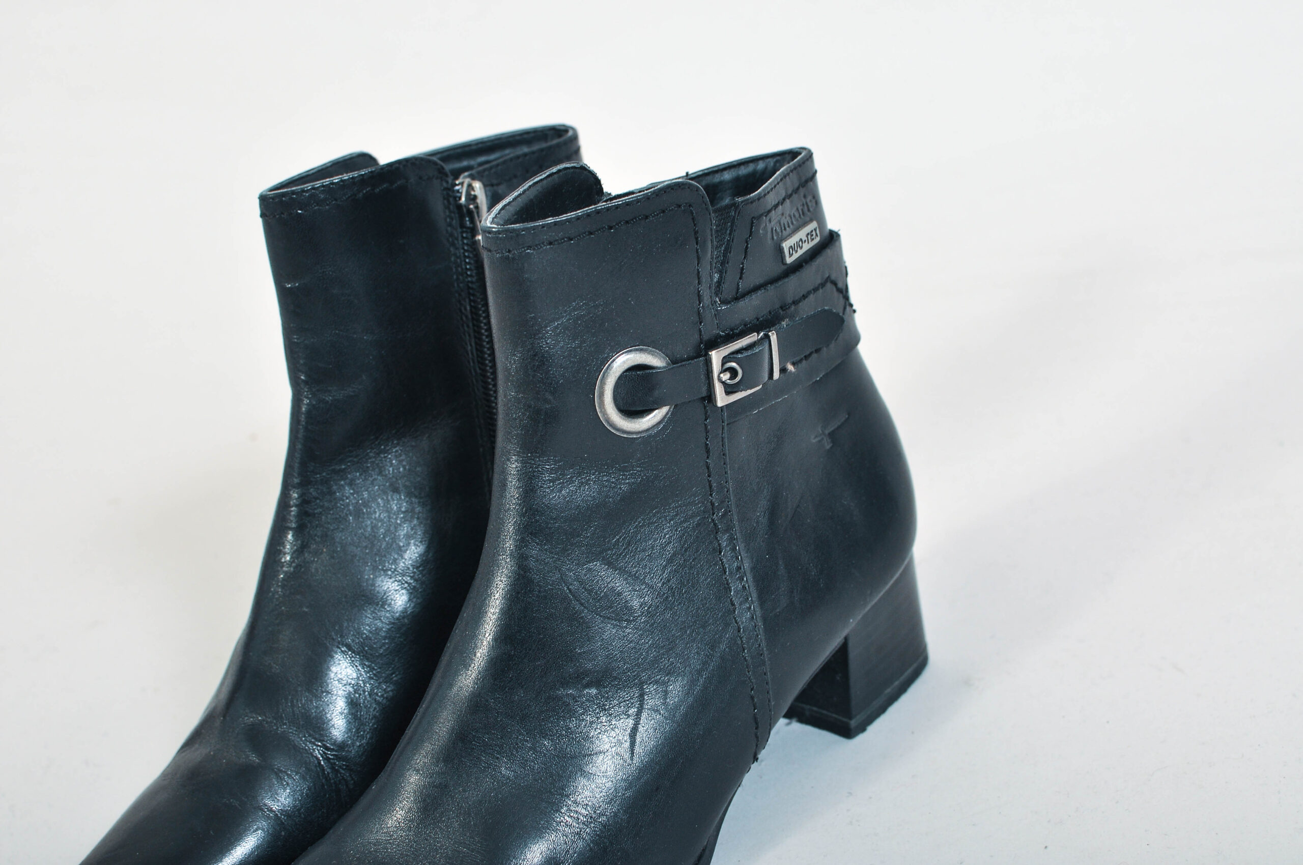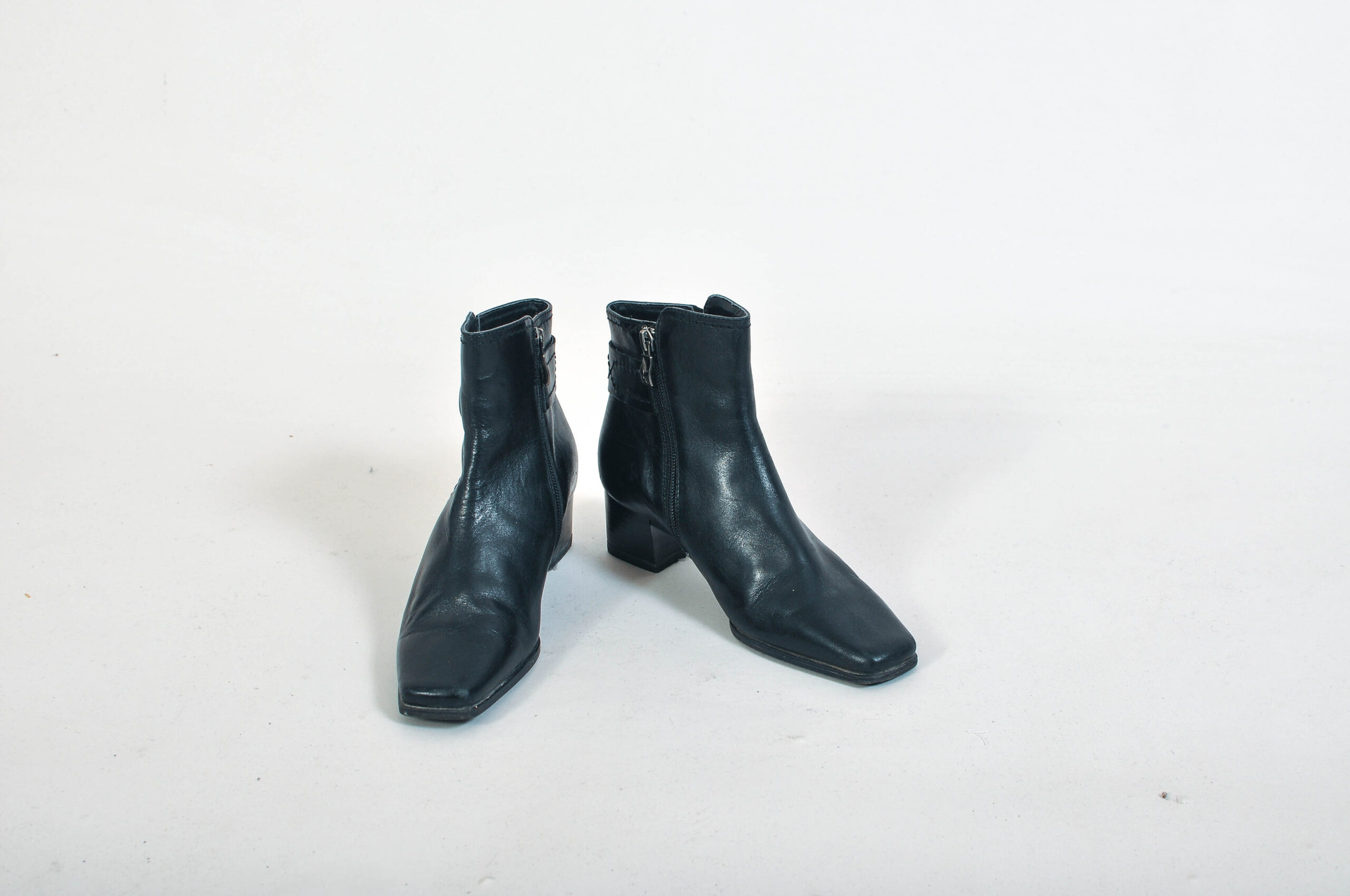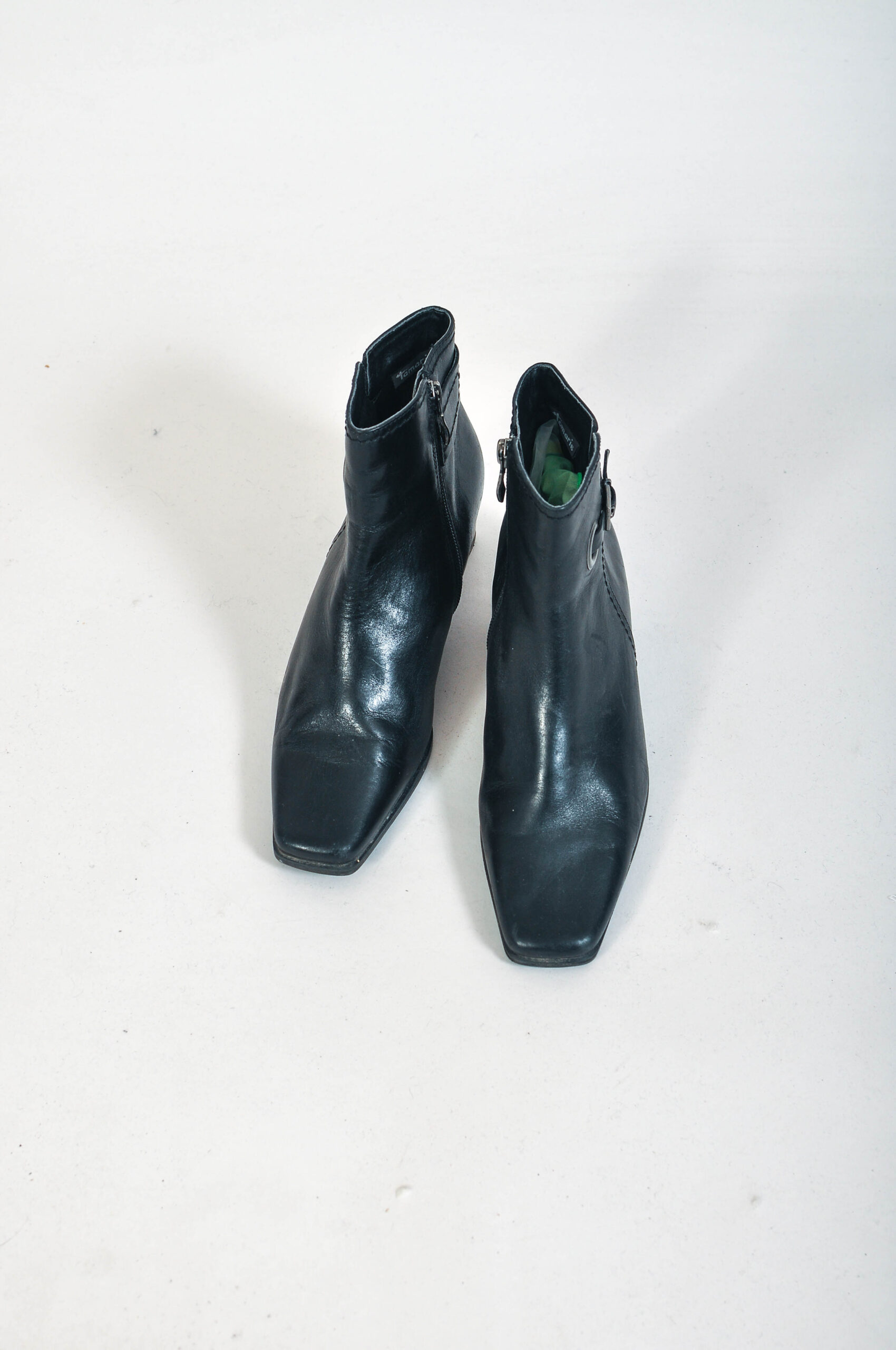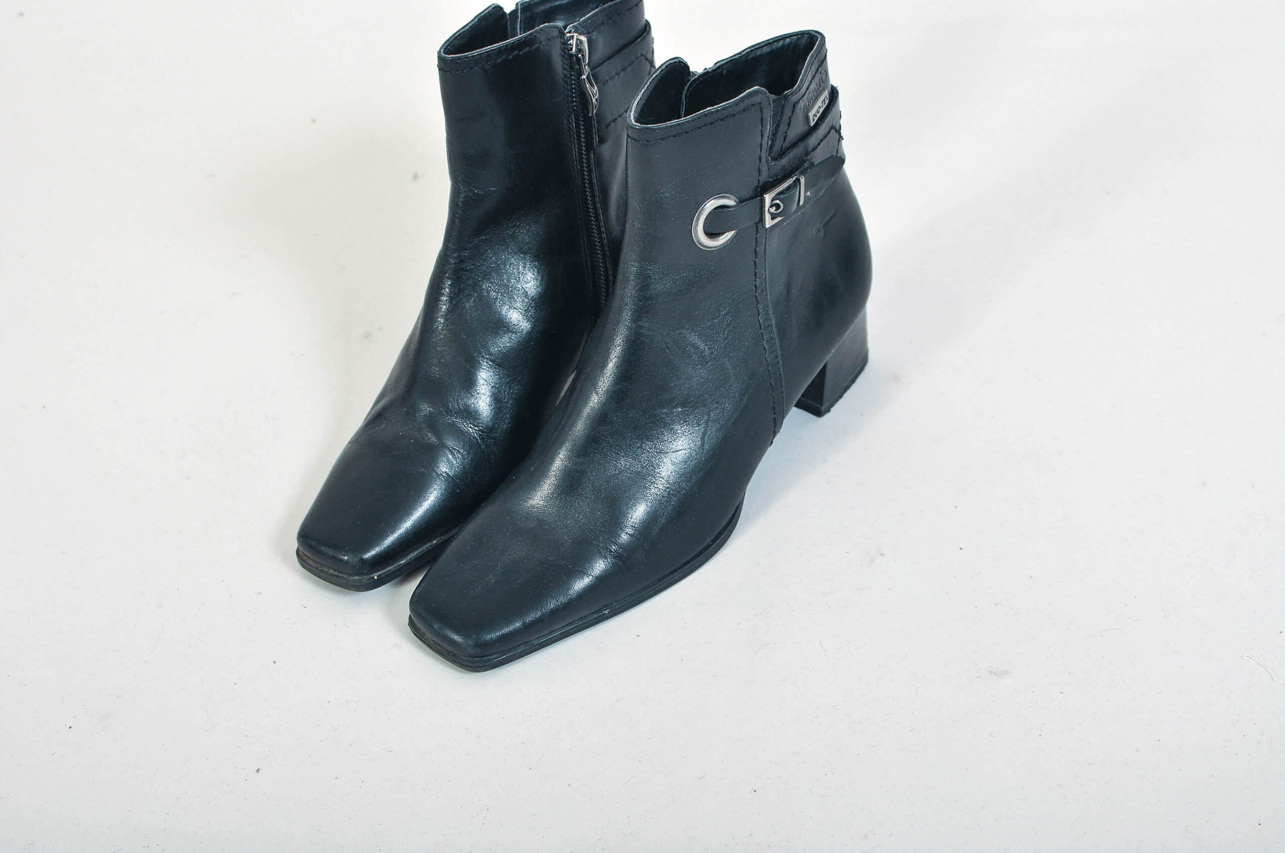 Authentic vintage Y2K black leather ankle boots by Tamaris, designed with a sleek early 2000s silhouette and comfortable 5 cm heel. Made from real leather, these boots are durable, versatile, and ideal for everyday wear.