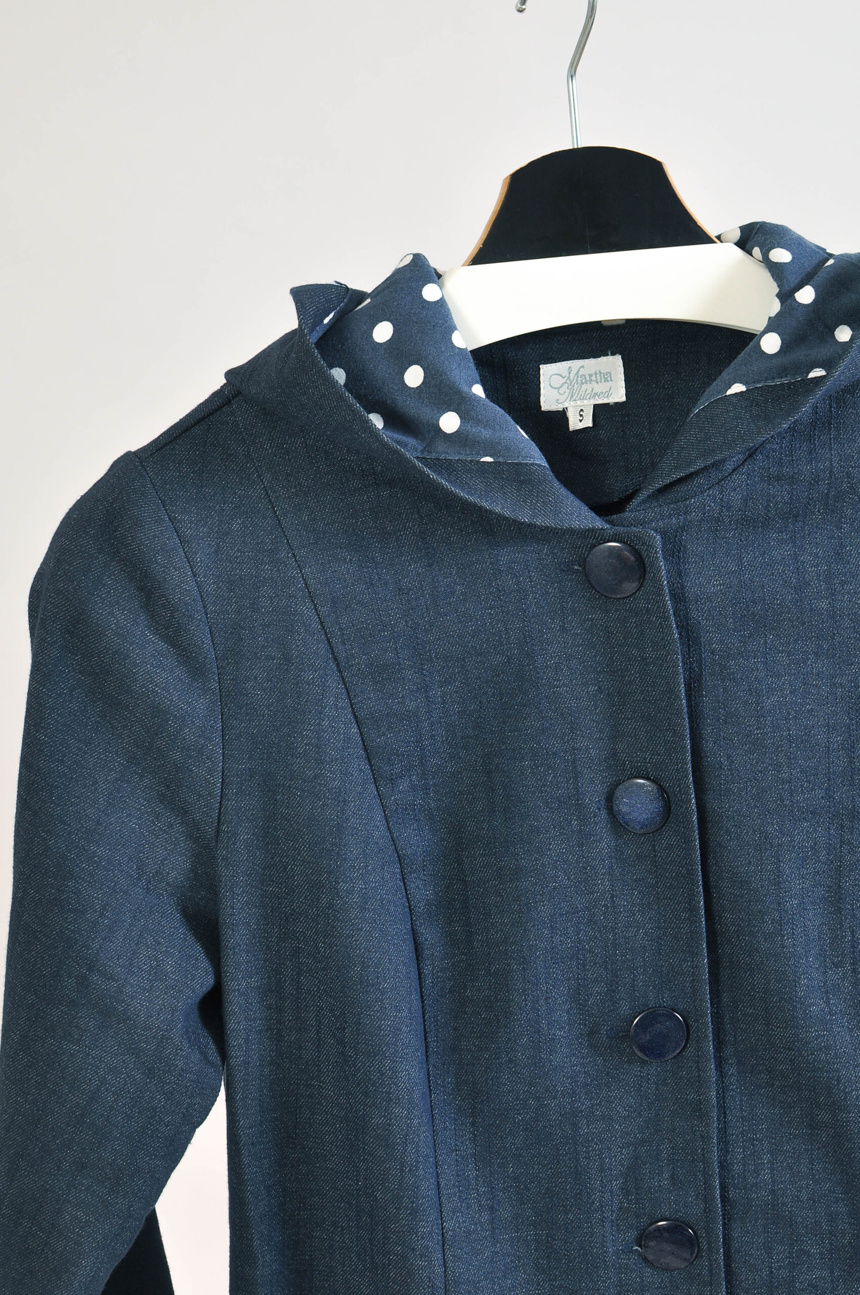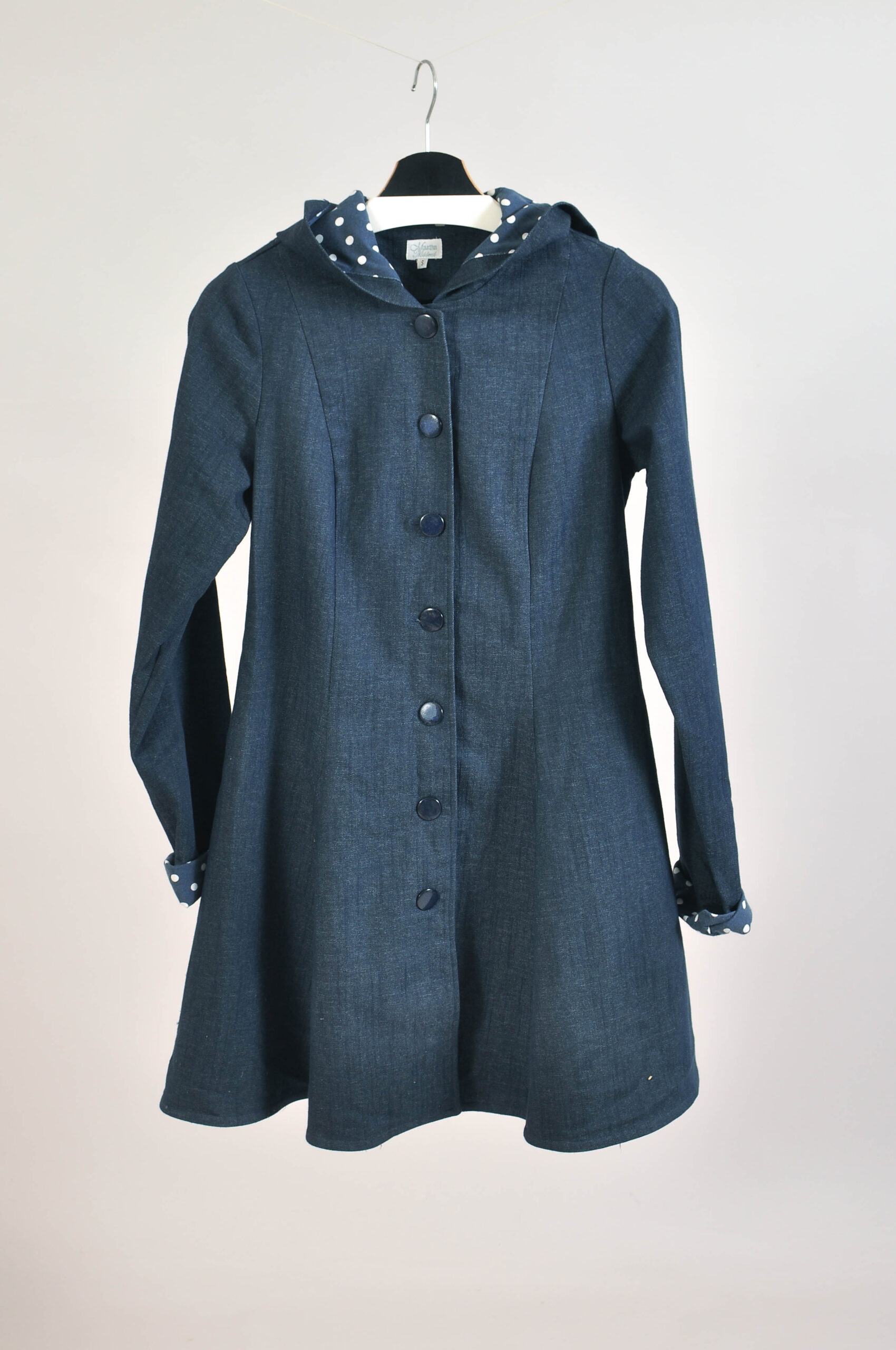 Stylish vintage Y2K denim coat by Martha Mildred featuring a longline silhouette and classic denim construction. A standout piece that blends casual durability with a clean, structured look.