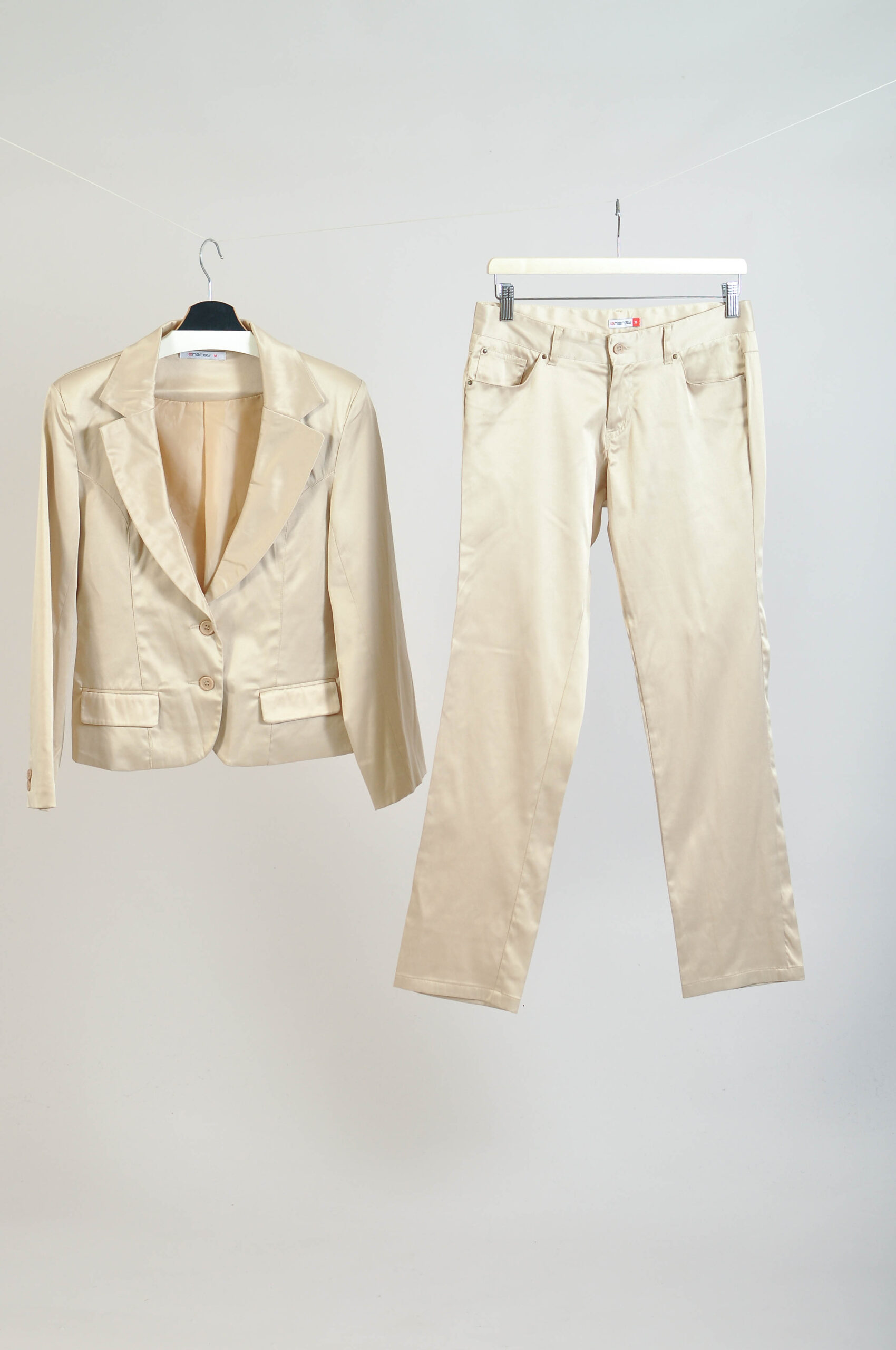 Authentic vintage early 2000s light gold pants suit by Energy. A stylish co-ordinated set with a sleek Y2K-inspired silhouette. Shows natural signs of wear consistent with vintage condition. Please check measurements for accurate fit.